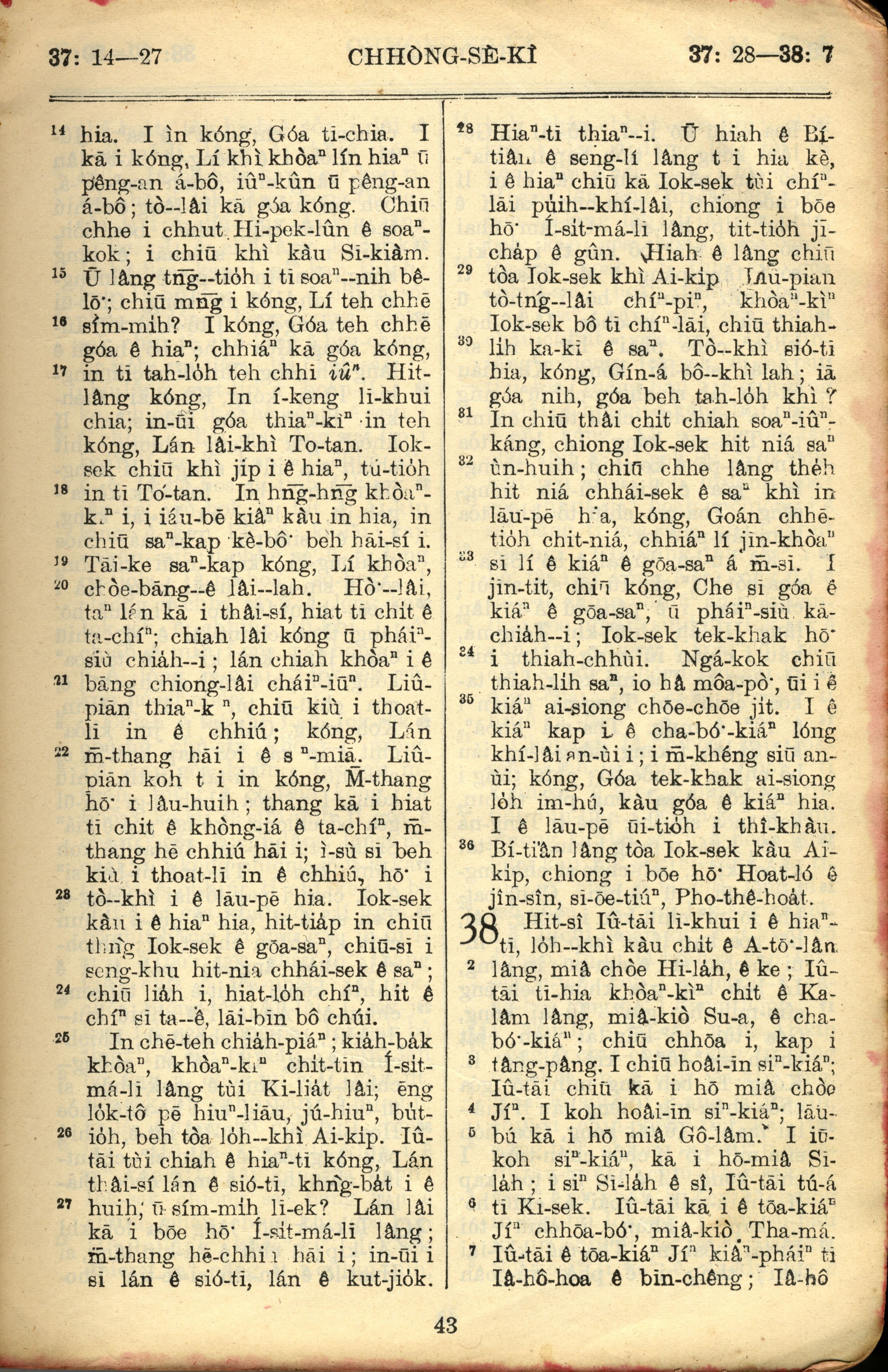 1957年巴克禮全羅台語聖經串珠版 創世記 37 章 14 節到 38 章 7 節