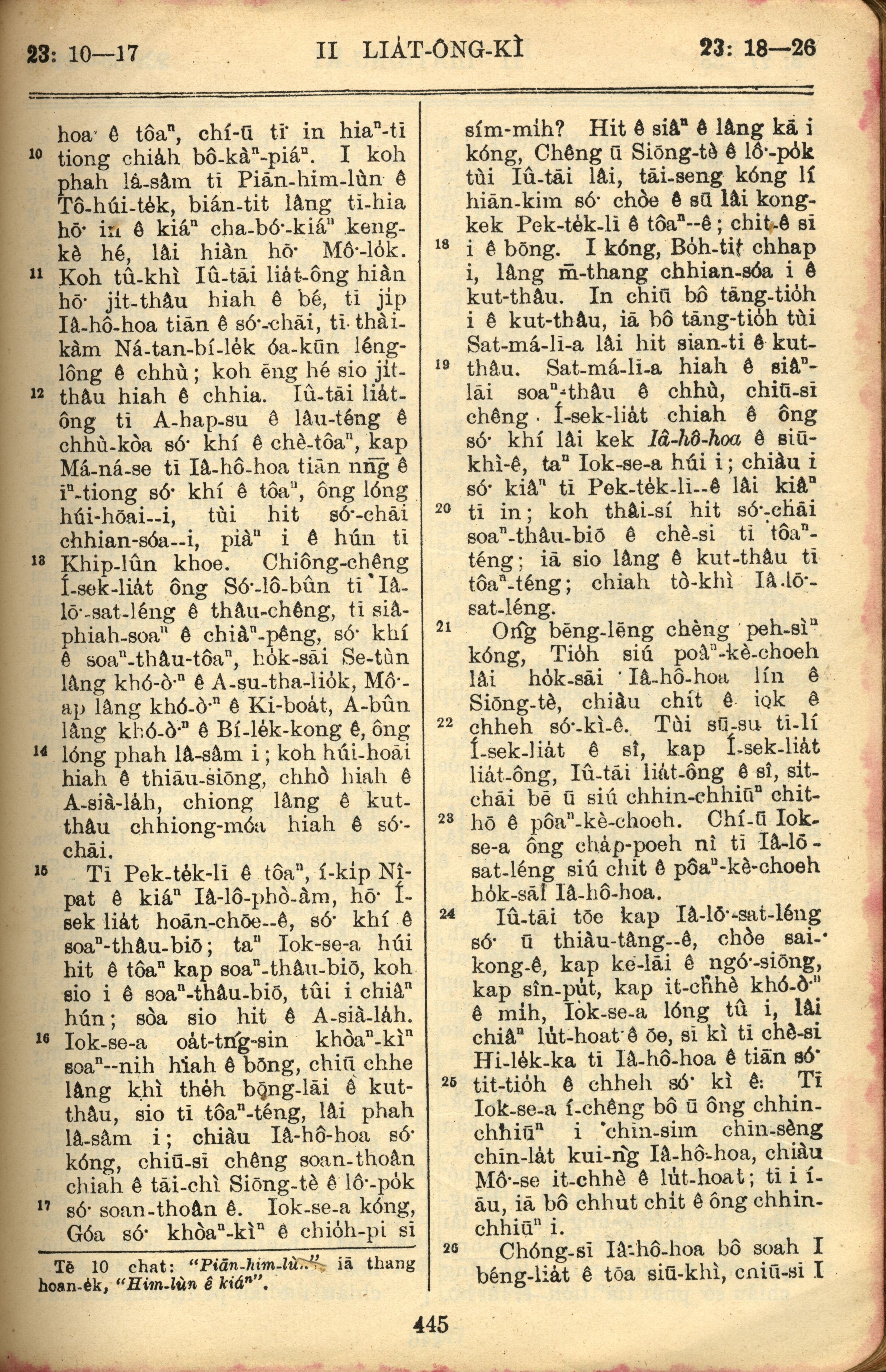 1957年巴克禮全羅台語聖經串珠版 列王紀下 23 章 10 節到 23 章 26 節
