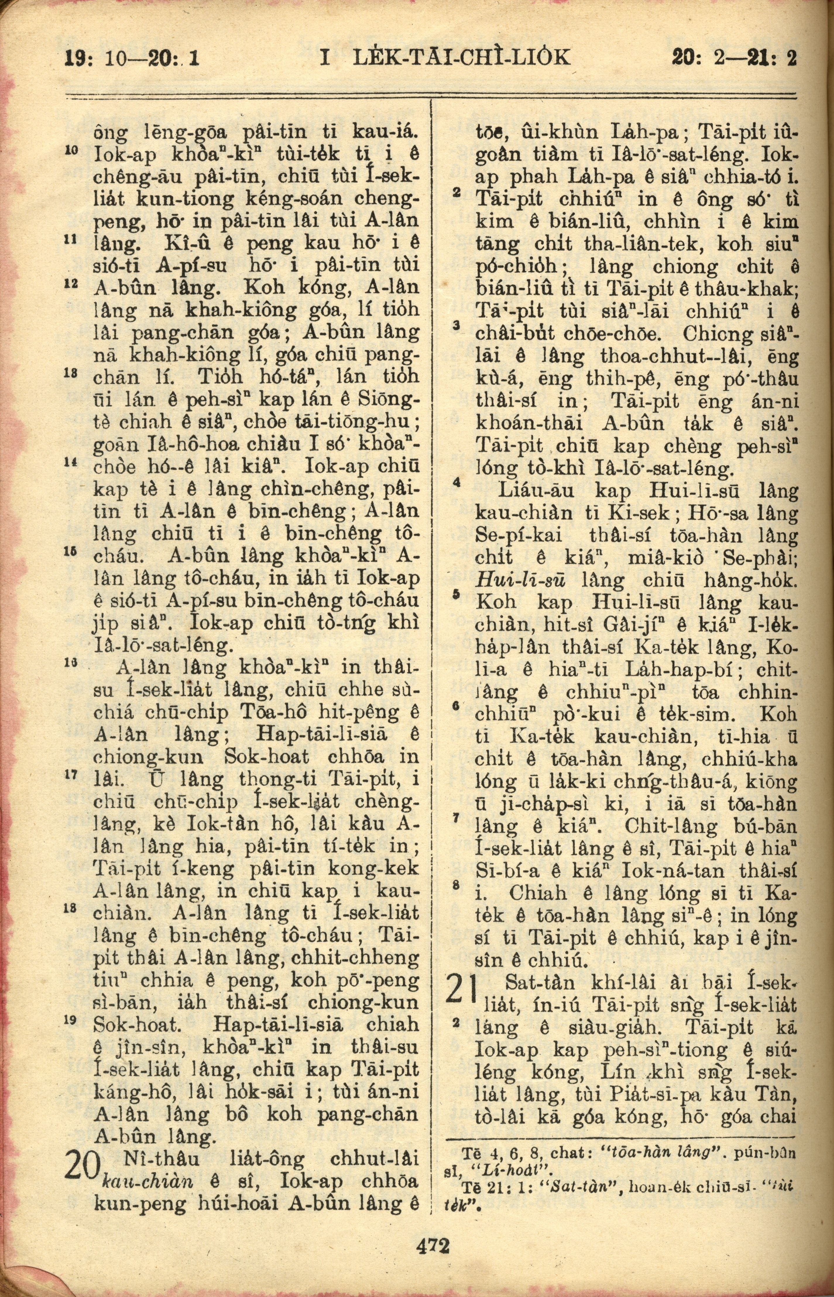 1957年巴克禮全羅台語聖經串珠版 歷代志上 19 章 10 節到 21 章 2 節