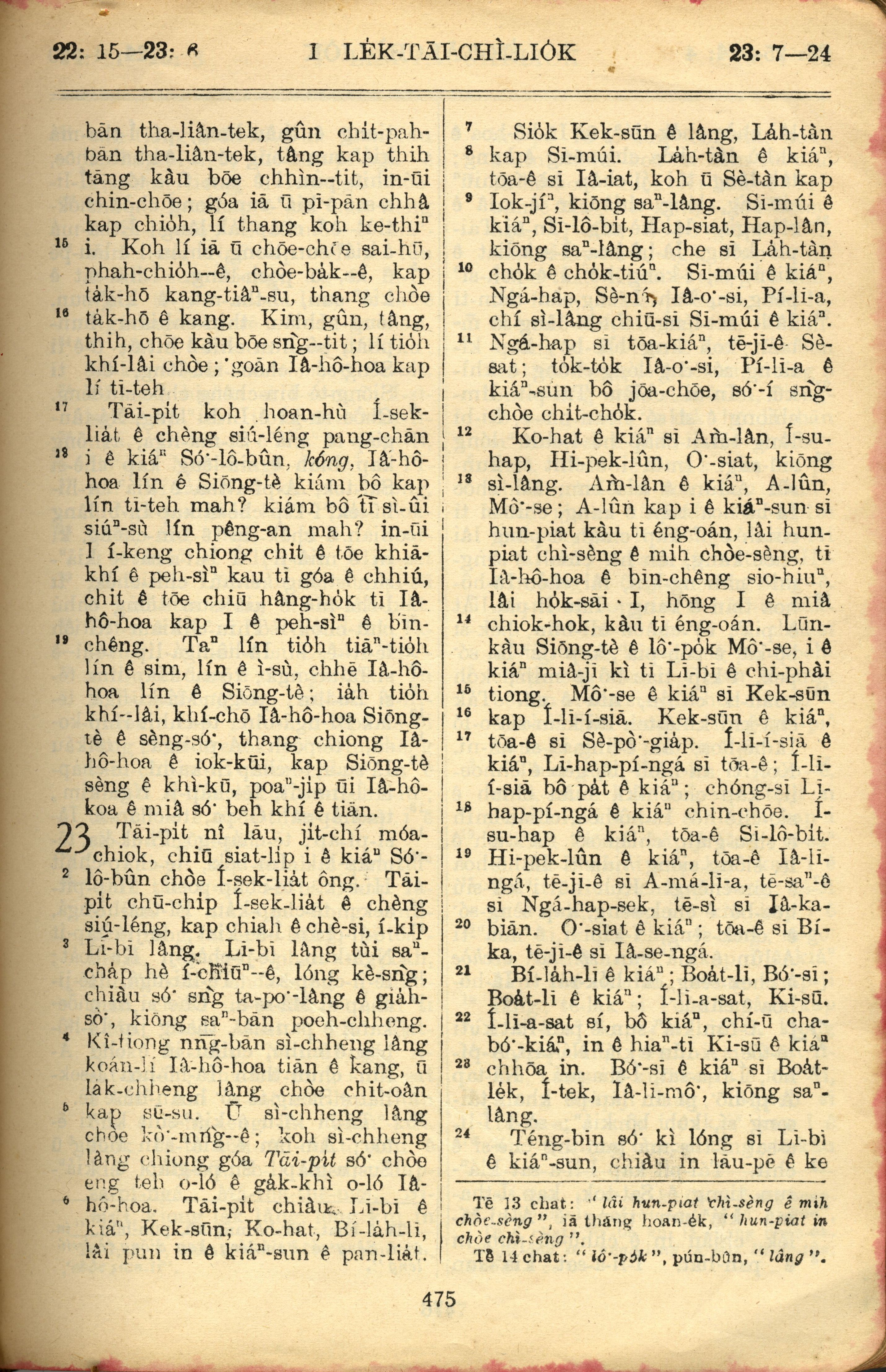 1957年巴克禮全羅台語聖經串珠版 歷代志上 22 章 15 節到 23 章 24 節
