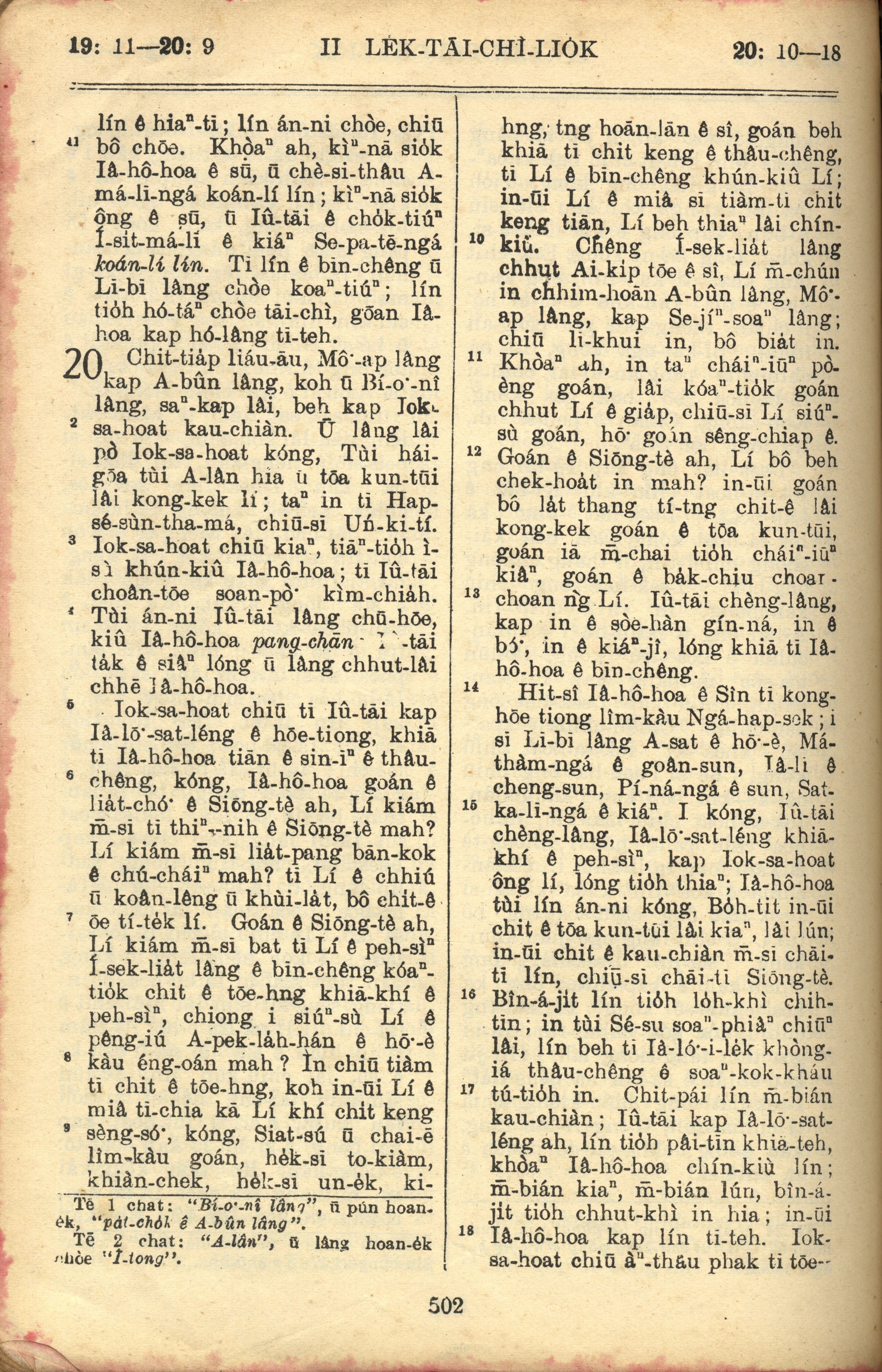 1957年巴克禮全羅台語聖經串珠版 歷代志下 19 章 11 節到 20 章 18 節