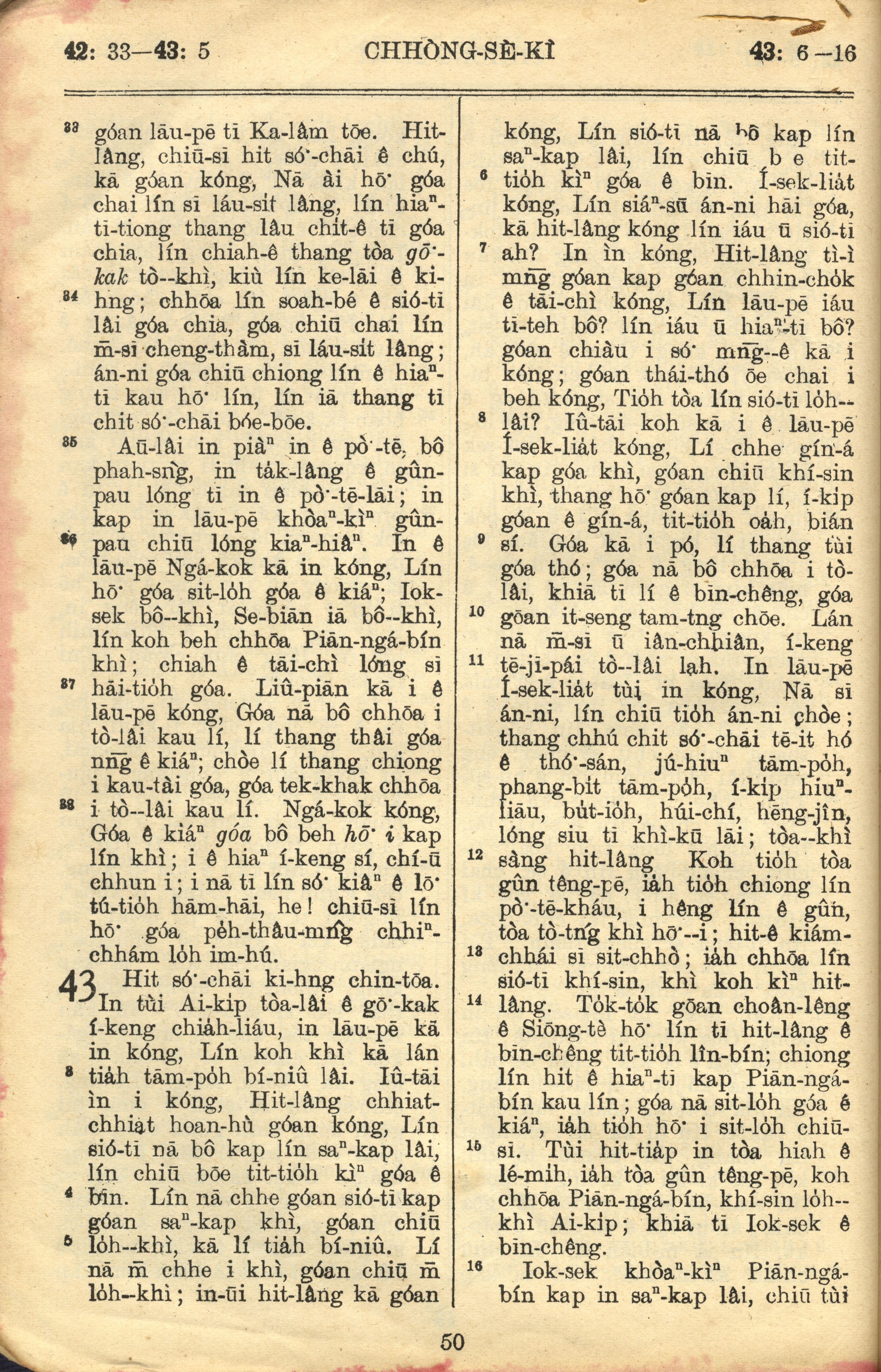 1957年巴克禮全羅台語聖經串珠版 創世記 42 章 33 節到 43 章 16 節