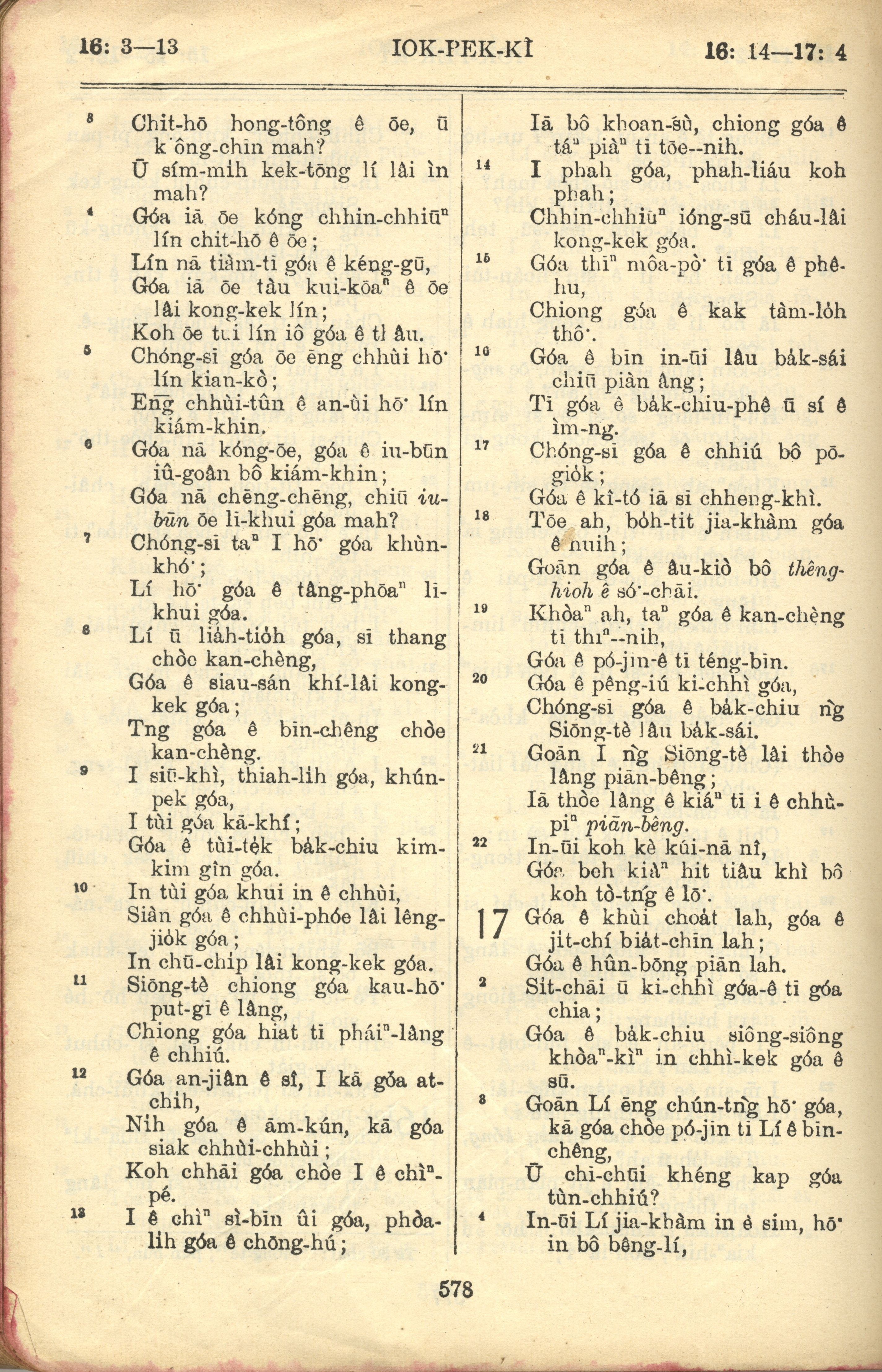 1957年巴克禮全羅台語聖經串珠版 約伯記 16 章 3 節到 17 章 4 節