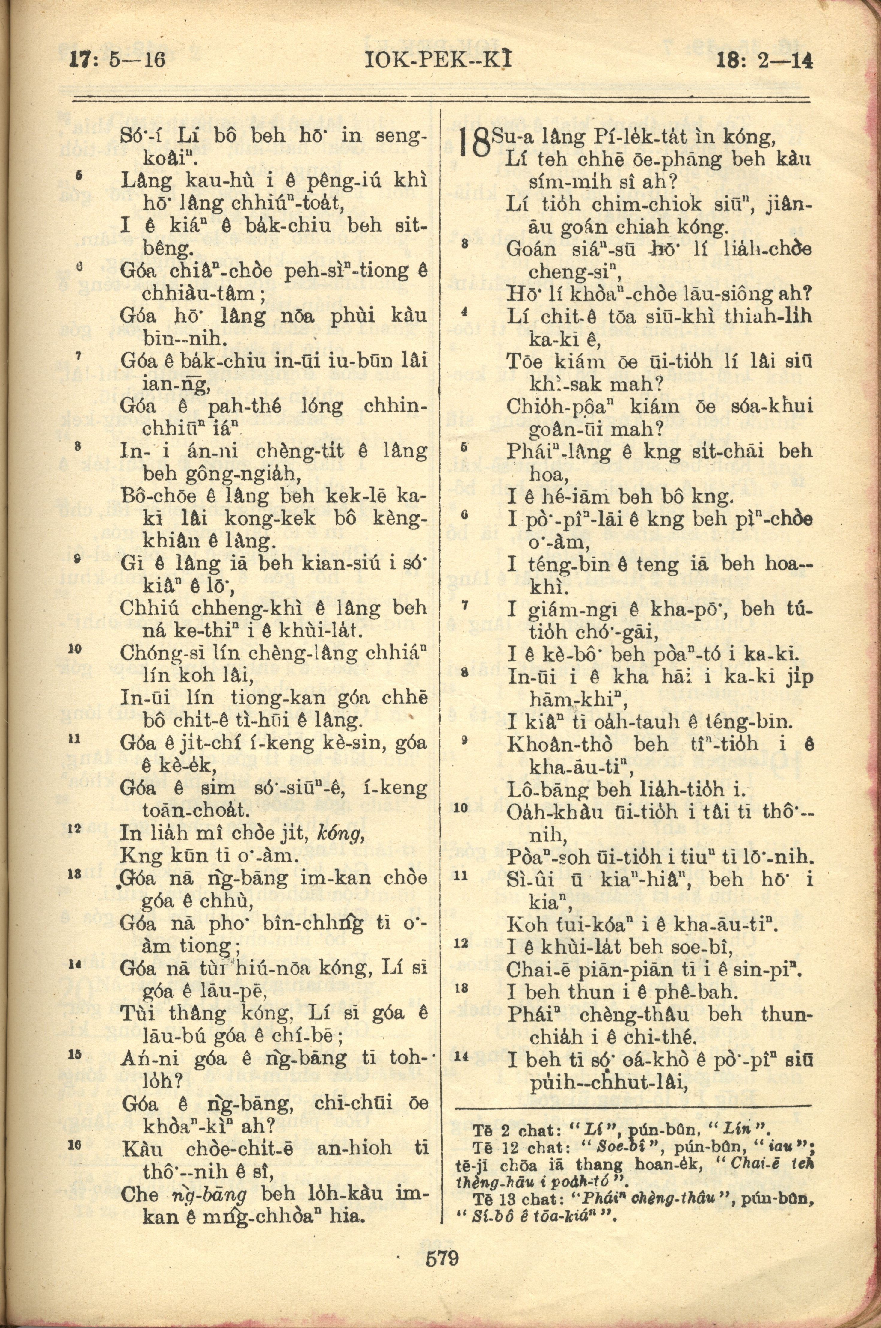 1957年巴克禮全羅台語聖經串珠版 約伯記 17 章 5 節到 18 章 14 節