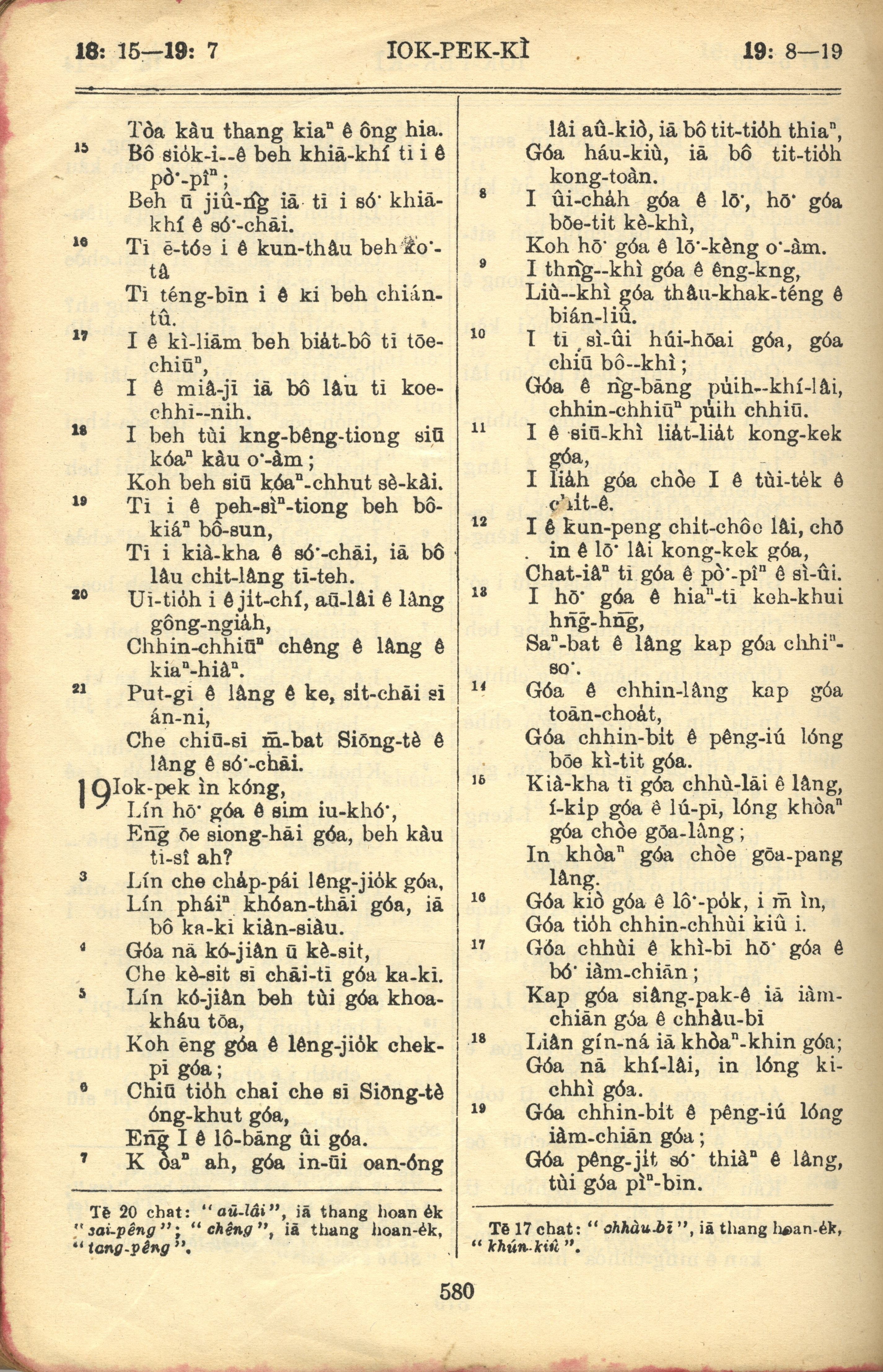 1957年巴克禮全羅台語聖經串珠版 約伯記 18 章 15 節到 19 章 19 節