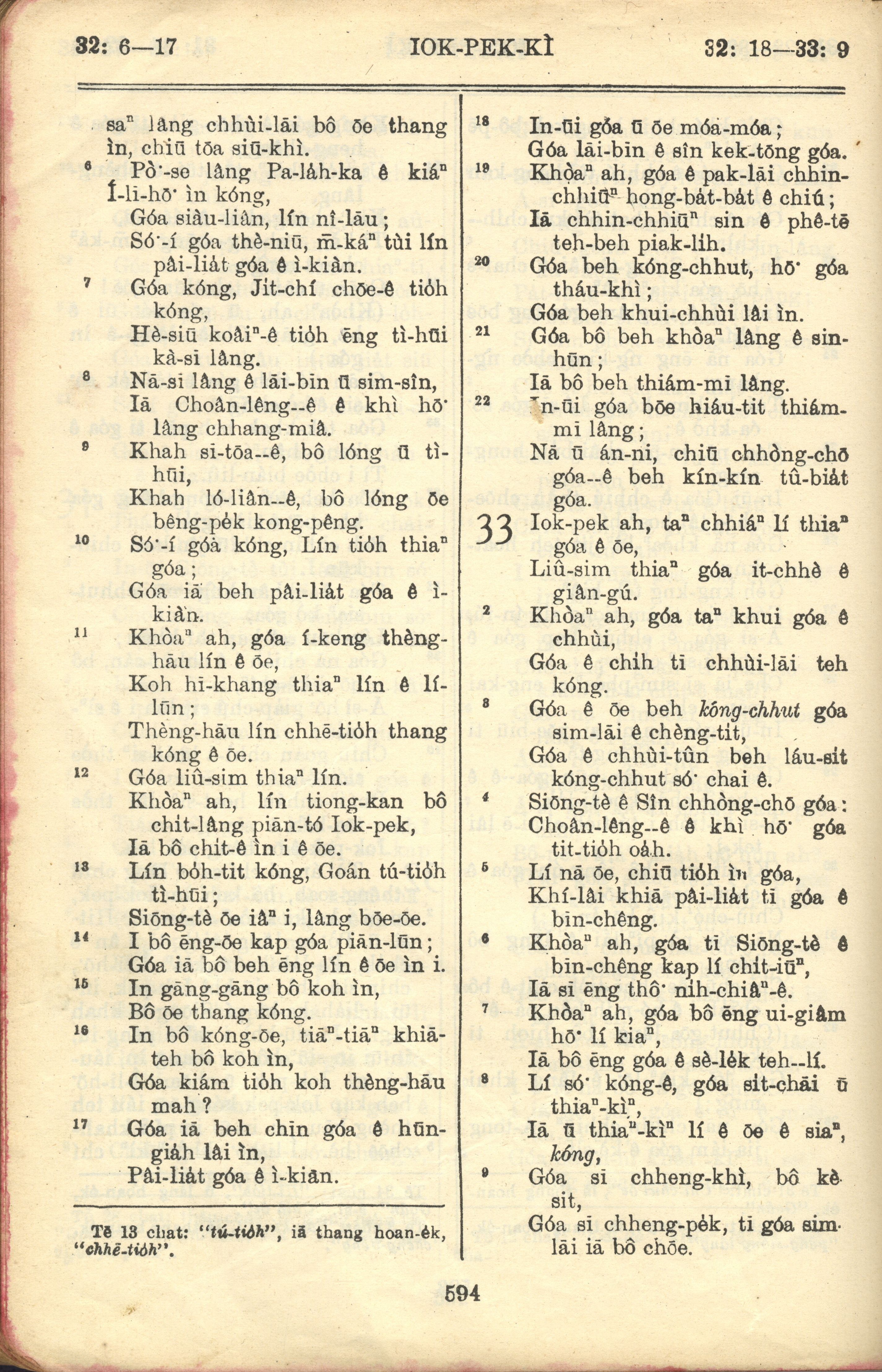 1957年巴克禮全羅台語聖經串珠版 約伯記 32 章 6 節到 33 章 9 節