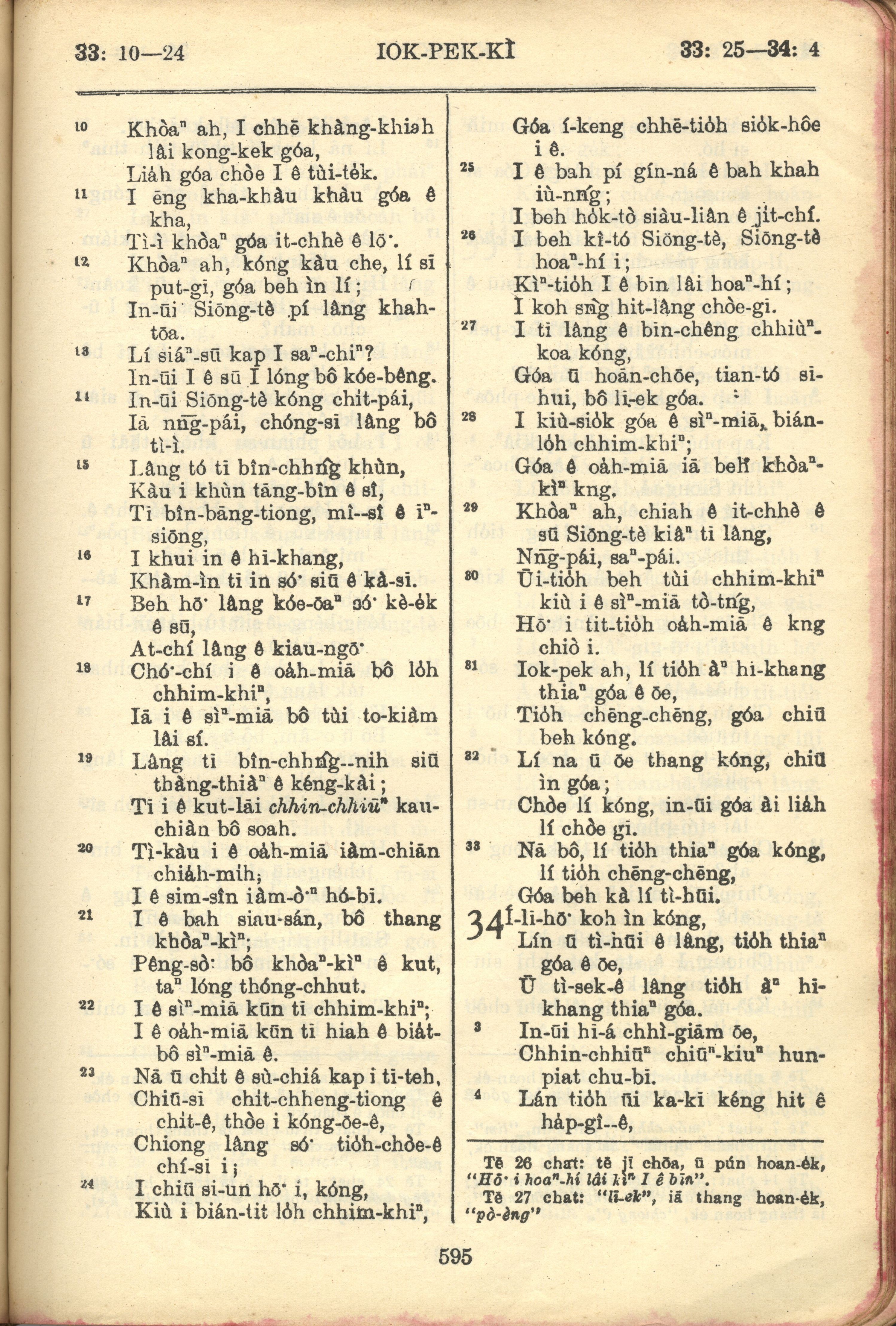 1957年巴克禮全羅台語聖經串珠版 約伯記 33 章 10 節到 34 章 4 節