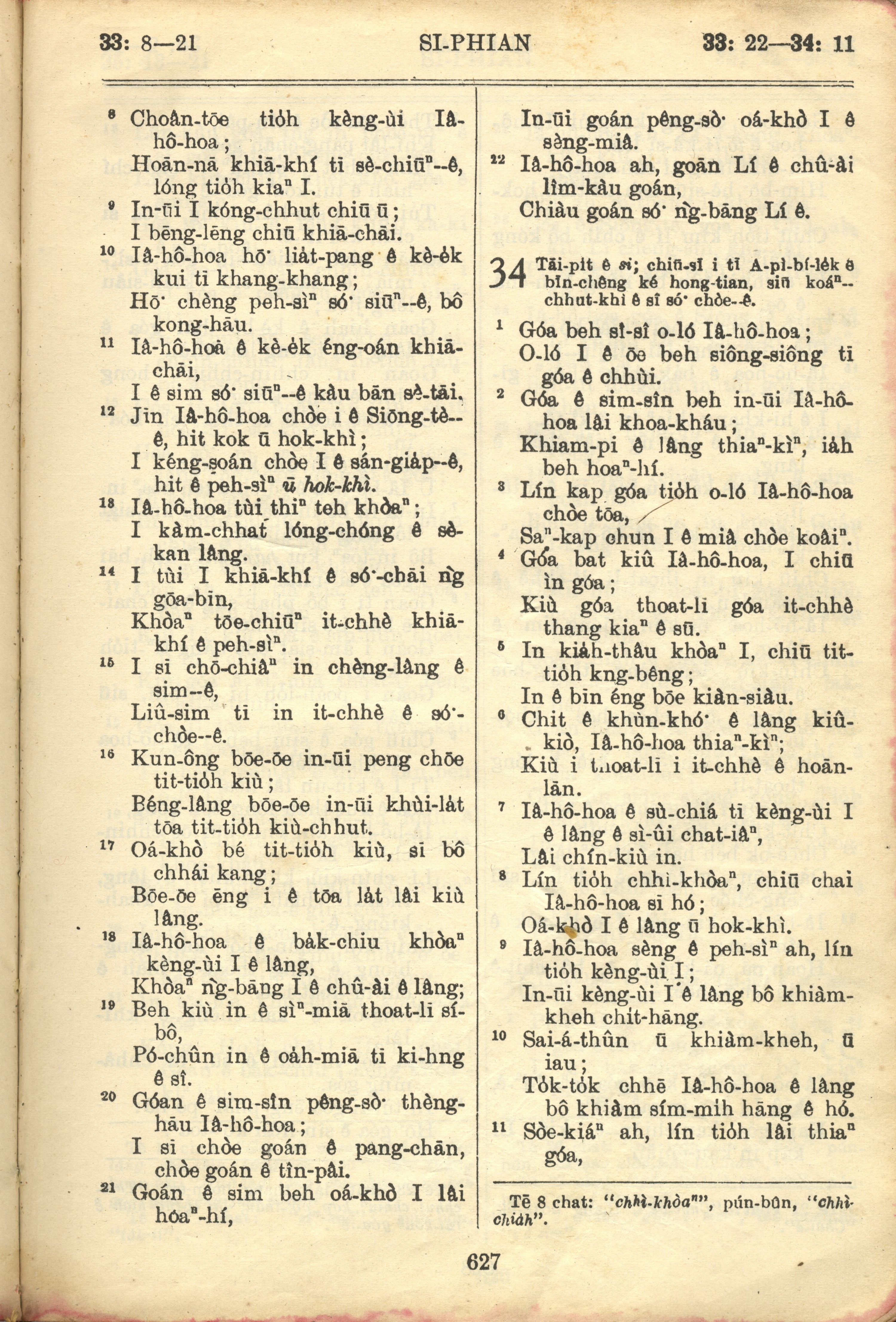 1957年巴克禮全羅台語聖經串珠版 詩篇 33 章 8 節到 34 章 11 節