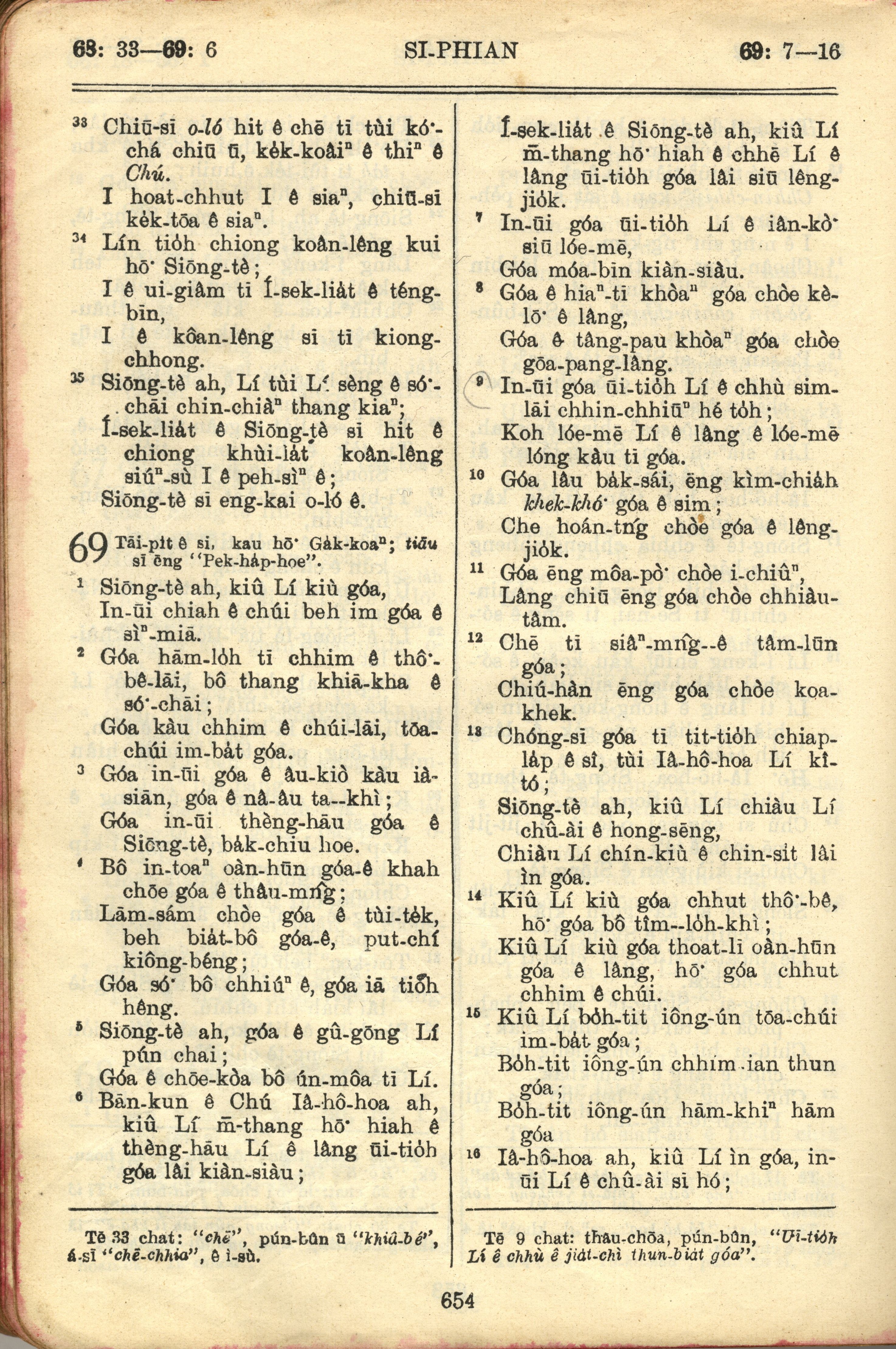 1957年巴克禮全羅台語聖經串珠版 詩篇 68 章 33 節到 69 章 16 節