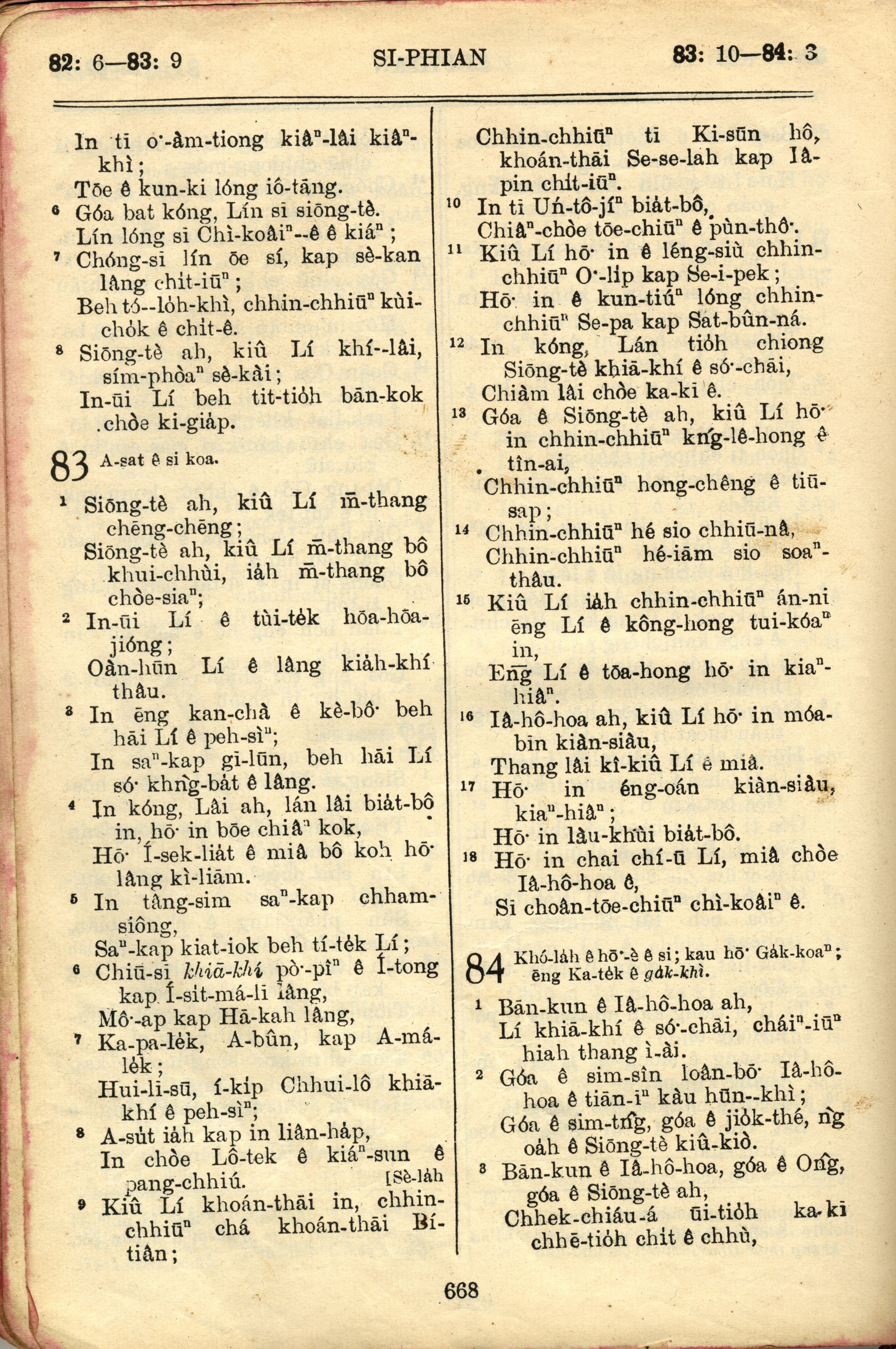 1957年巴克禮全羅台語聖經串珠版 詩篇 82 章 6 節到 84 章 3 節