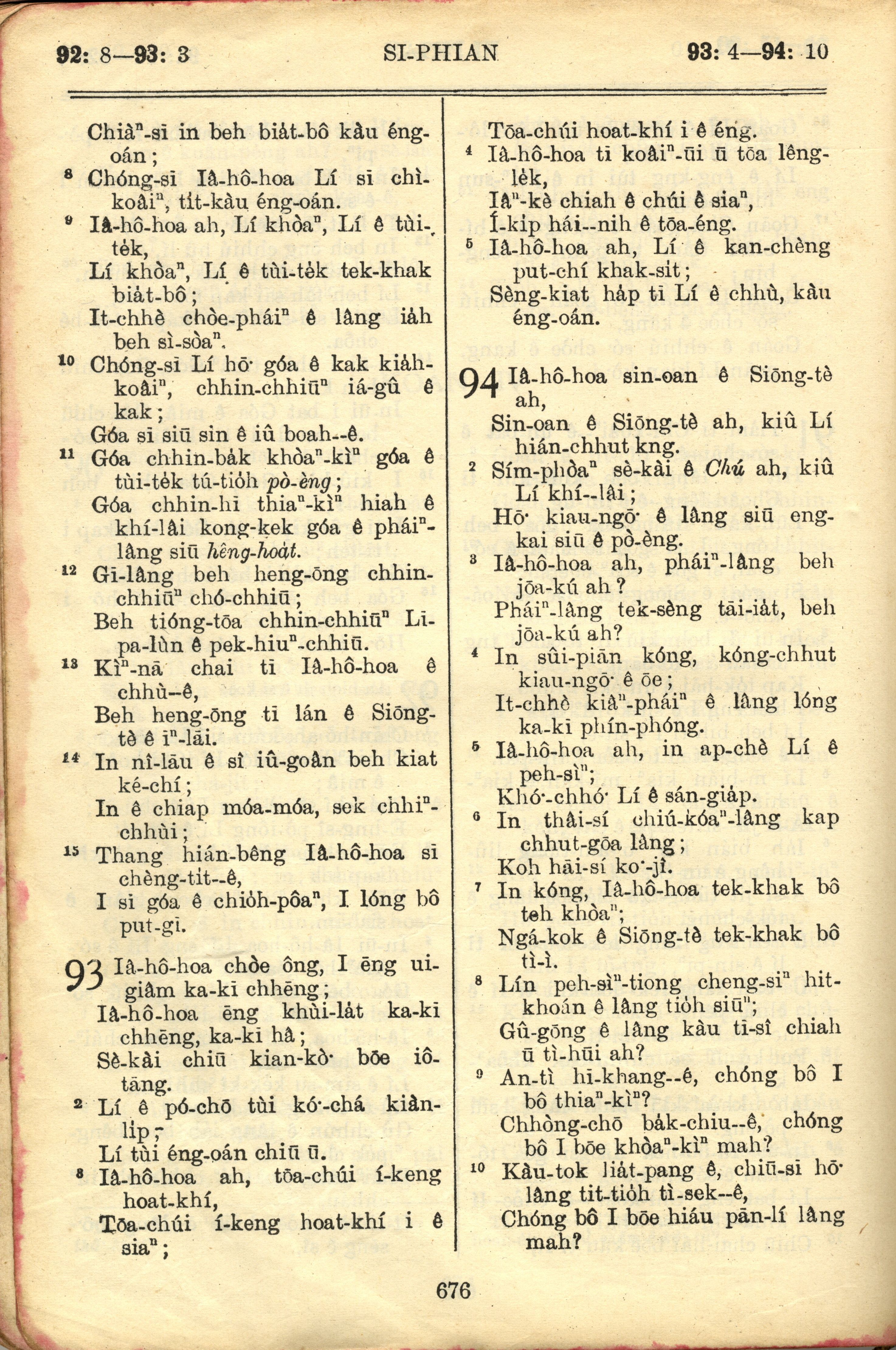 1957年巴克禮全羅台語聖經串珠版 詩篇 92 章 8 節到 94 章 10 節