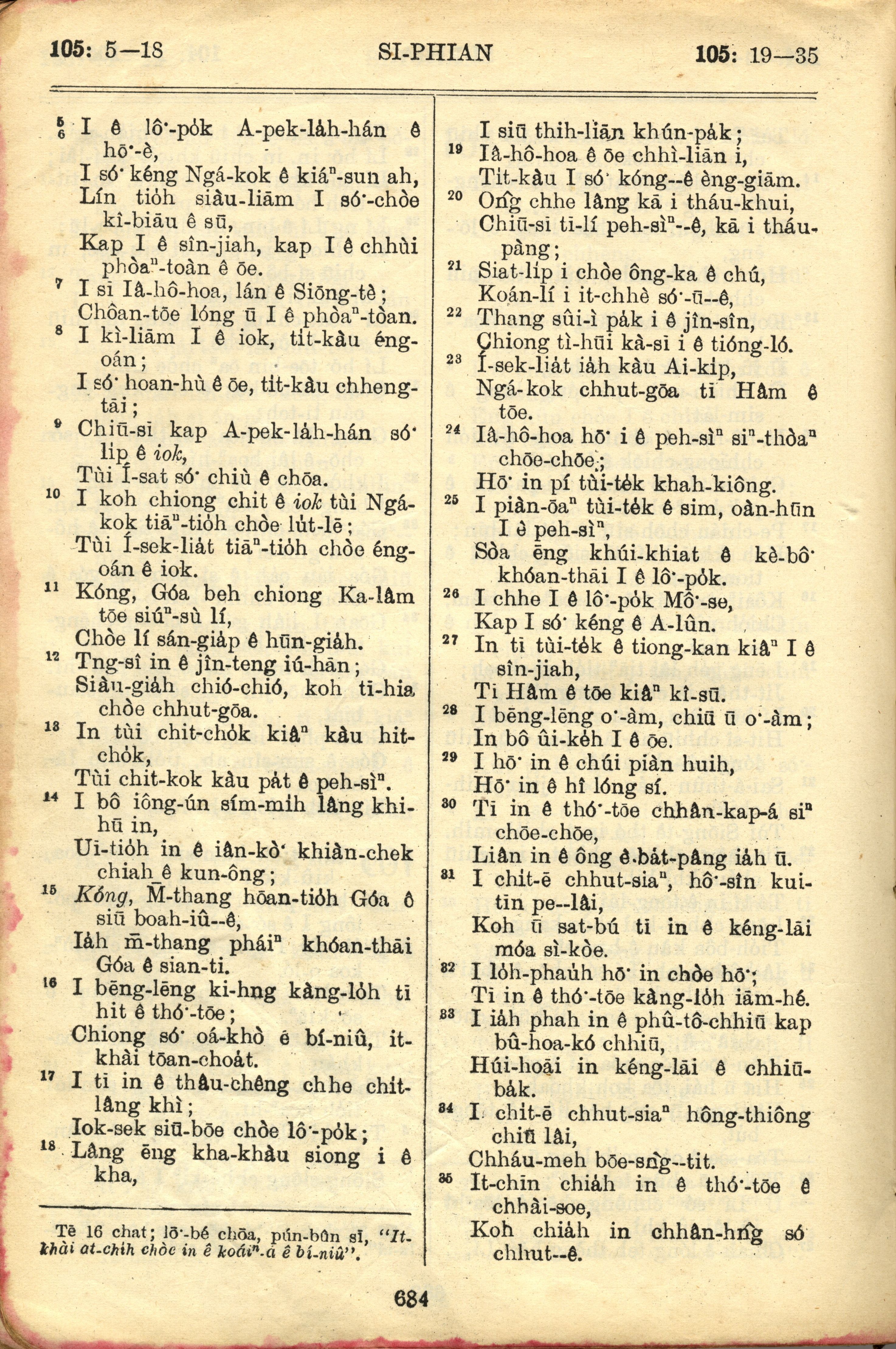 1957年巴克禮全羅台語聖經串珠版 詩篇 105 章 5 節到 105 章 35 節