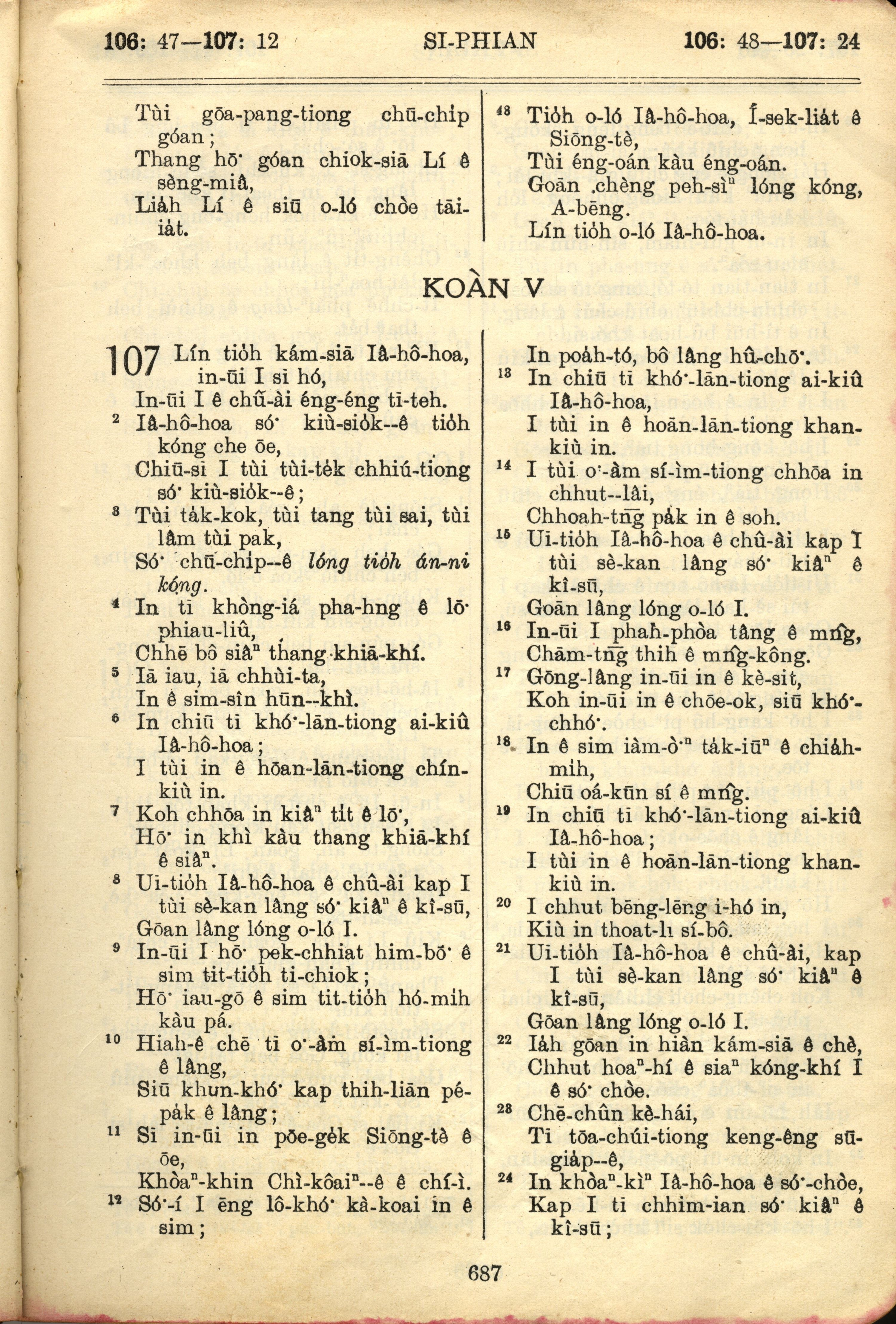 1957年巴克禮全羅台語聖經串珠版 詩篇 106 章 47 節到 107 章 24 節