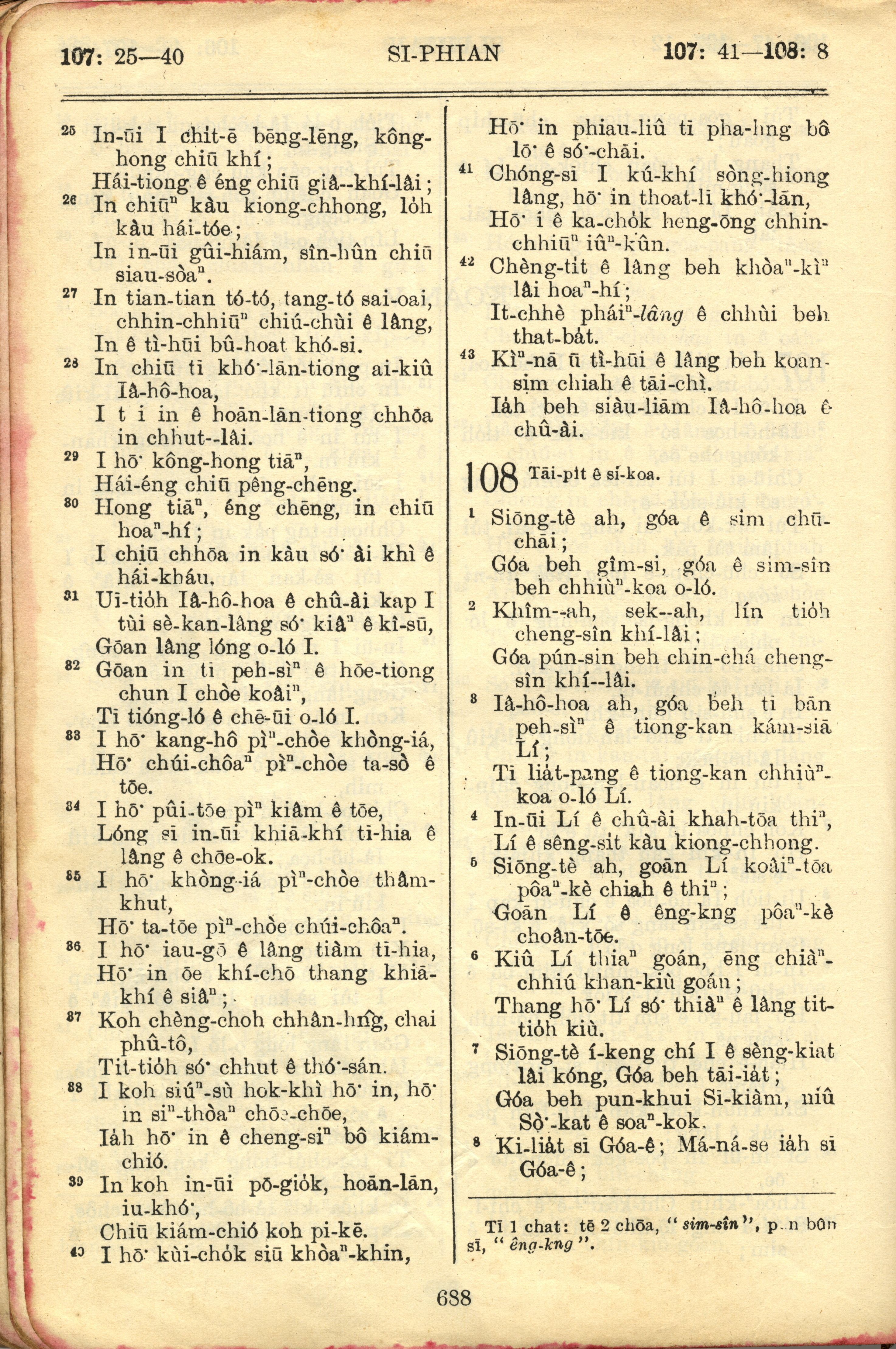 1957年巴克禮全羅台語聖經串珠版 詩篇 107 章 25 節到 108 章 8 節