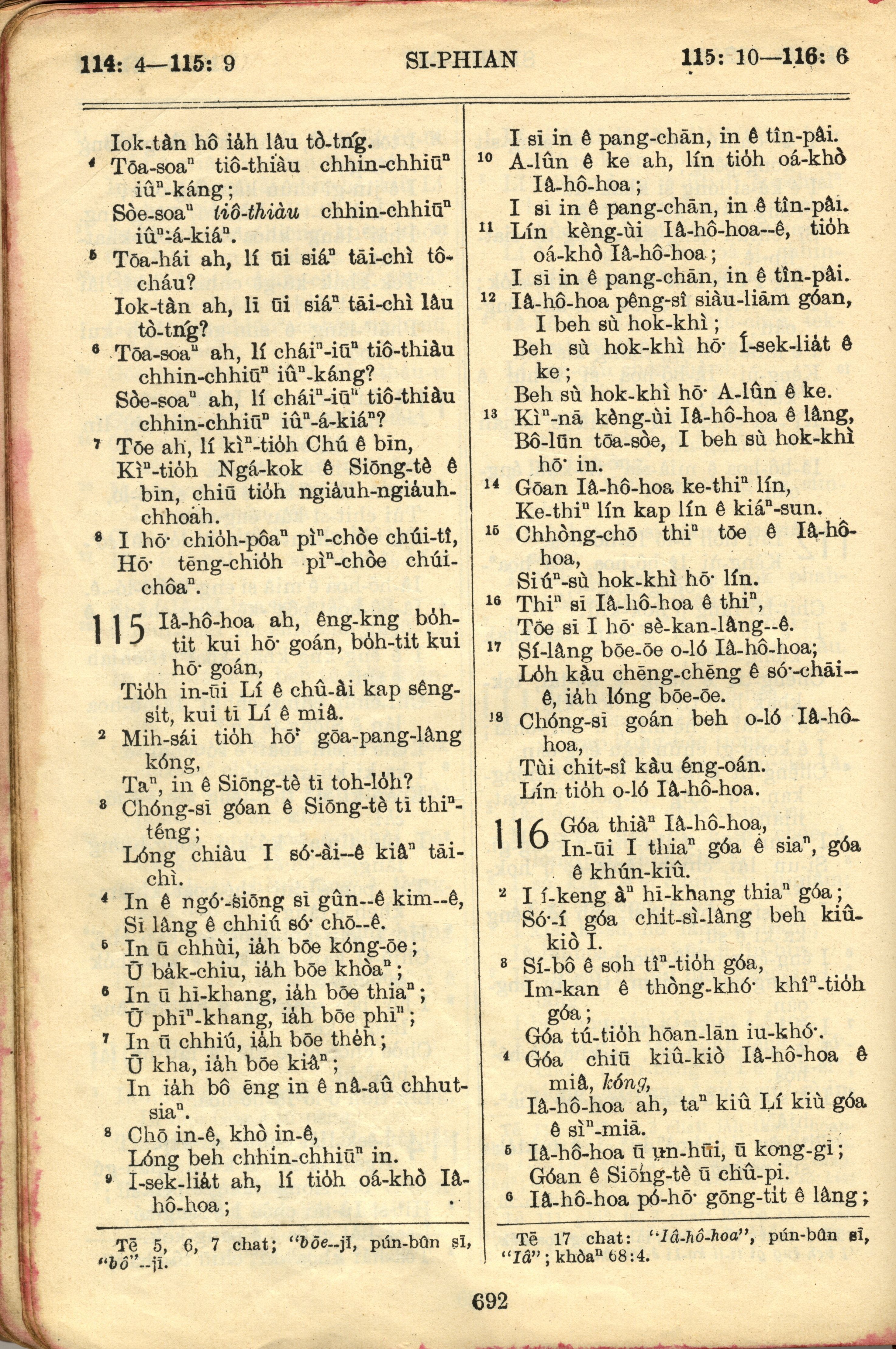 1957年巴克禮全羅台語聖經串珠版 詩篇 114 章 4 節到 116 章 6 節
