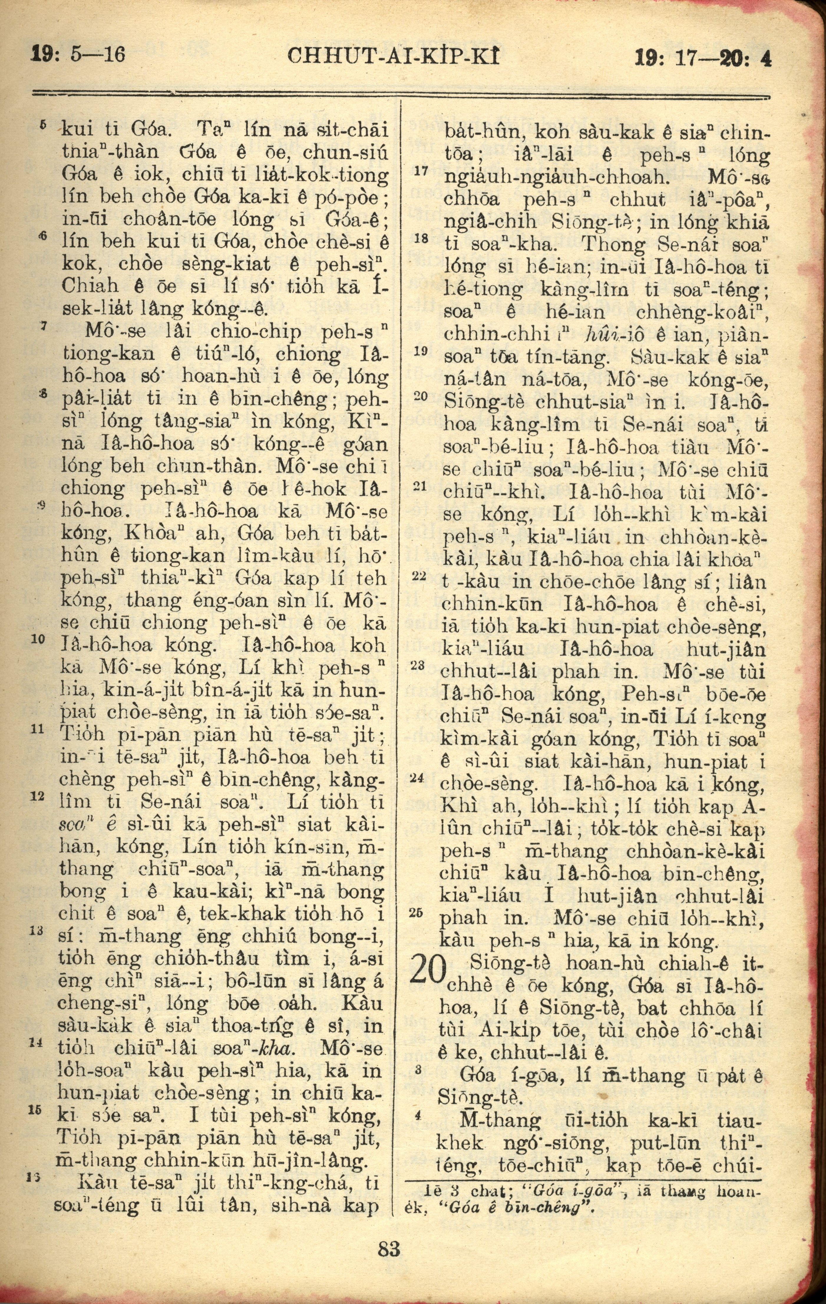 1957年巴克禮全羅台語聖經串珠版 出埃及記 19 章 5 節到 20 章 4 節