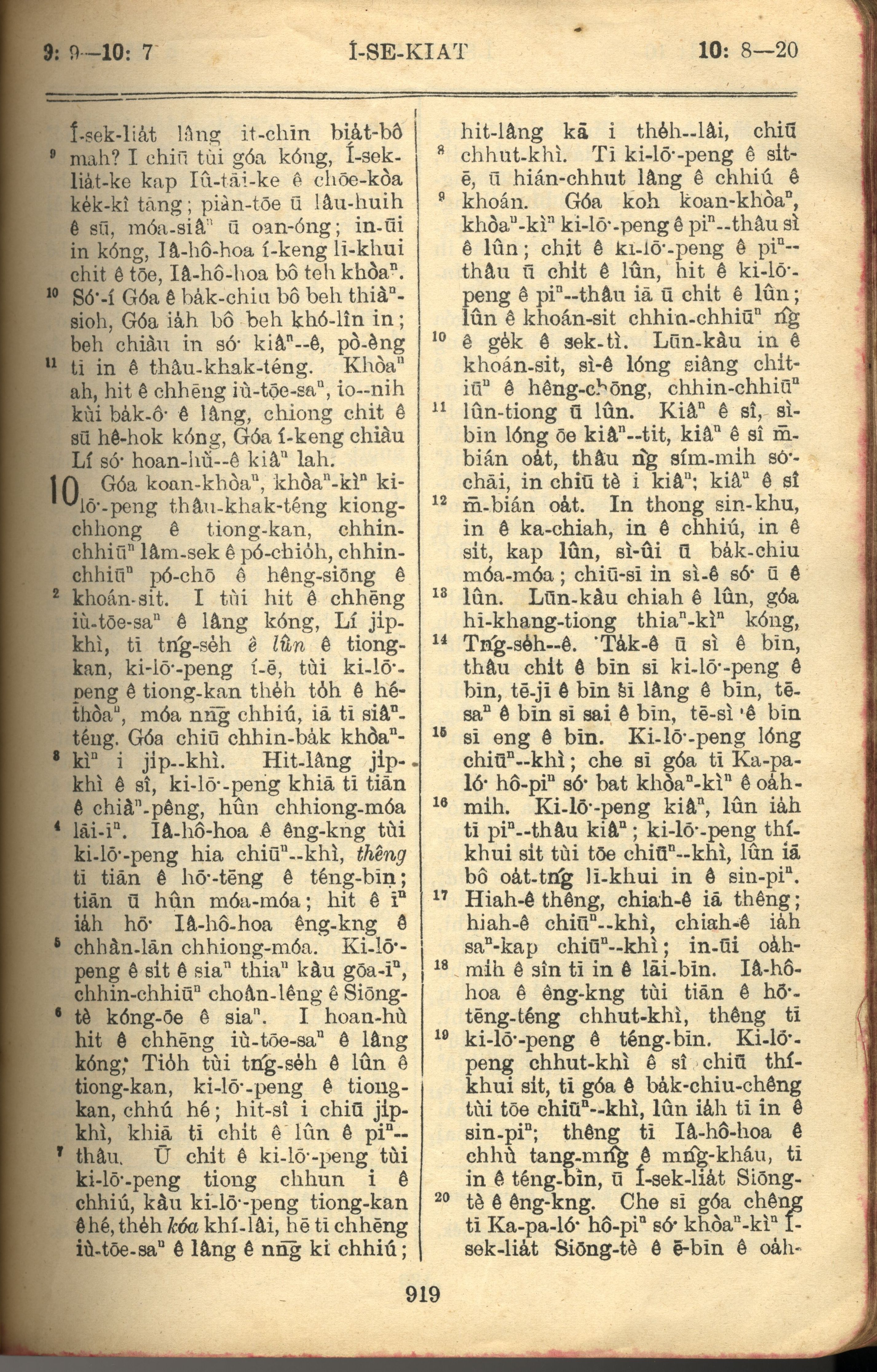 1957年巴克禮全羅台語聖經串珠版 以西結書 9 章 9 節到 10 章 20 節