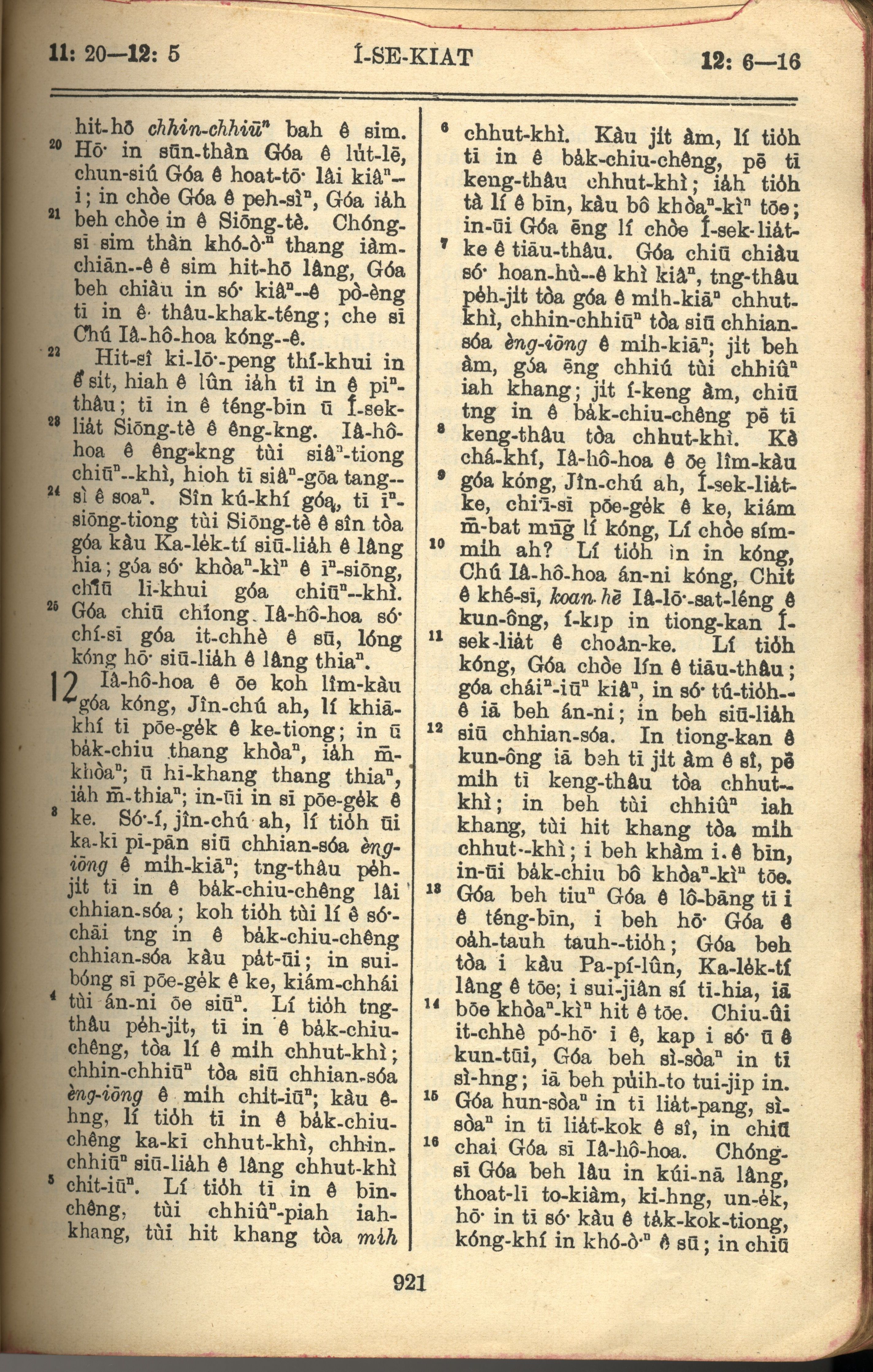 1957年巴克禮全羅台語聖經串珠版 以西結書 11 章 20 節到 12 章 16 節