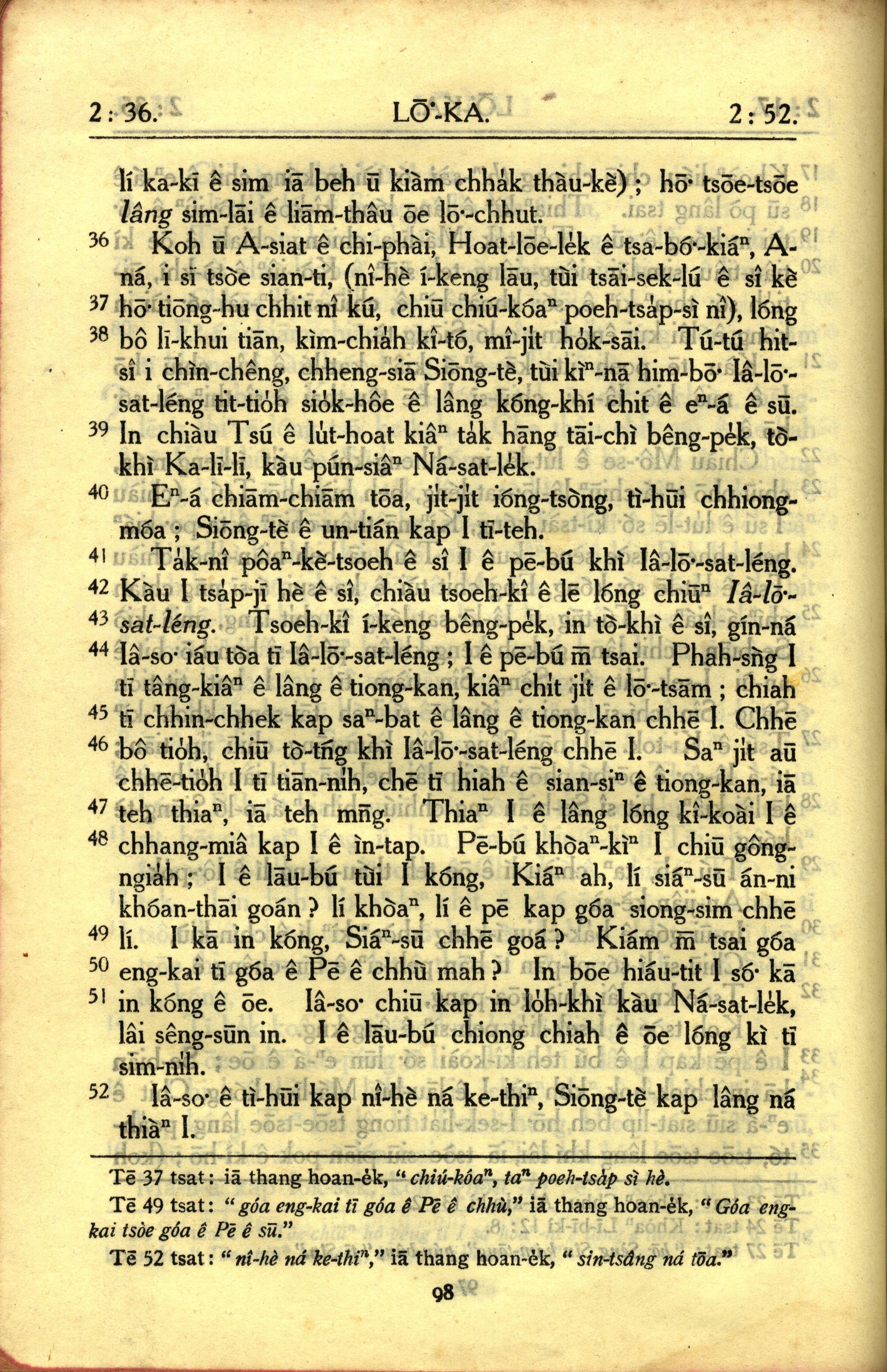 1950年教羅新約全書 路加福音 2 章 36 節到 2 章 52 節