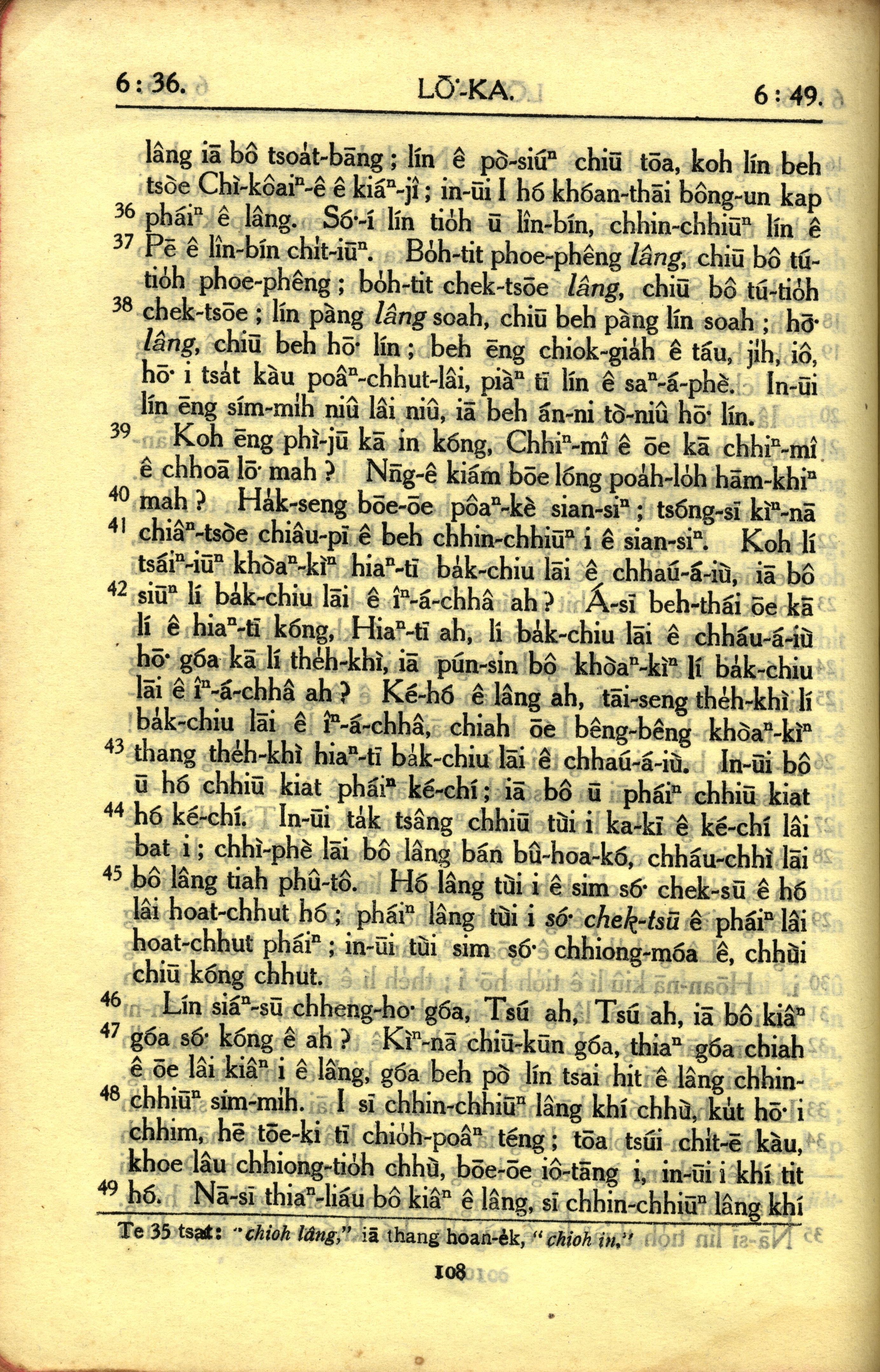 1950年教羅新約全書 路加福音 6 章 36 節到 6 章 49 節