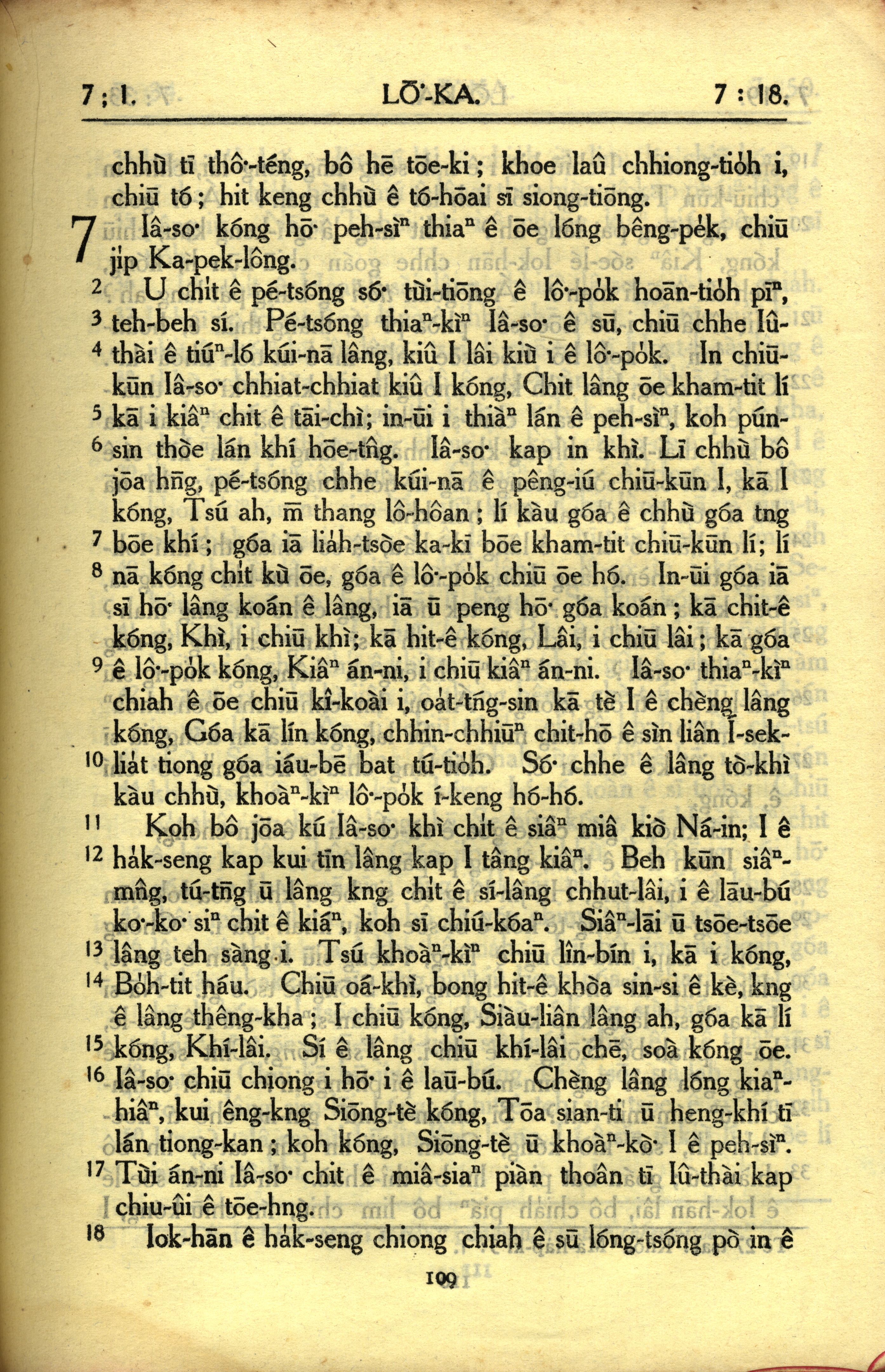 1950年教羅新約全書 路加福音 7 章 1 節到 7 章 18 節