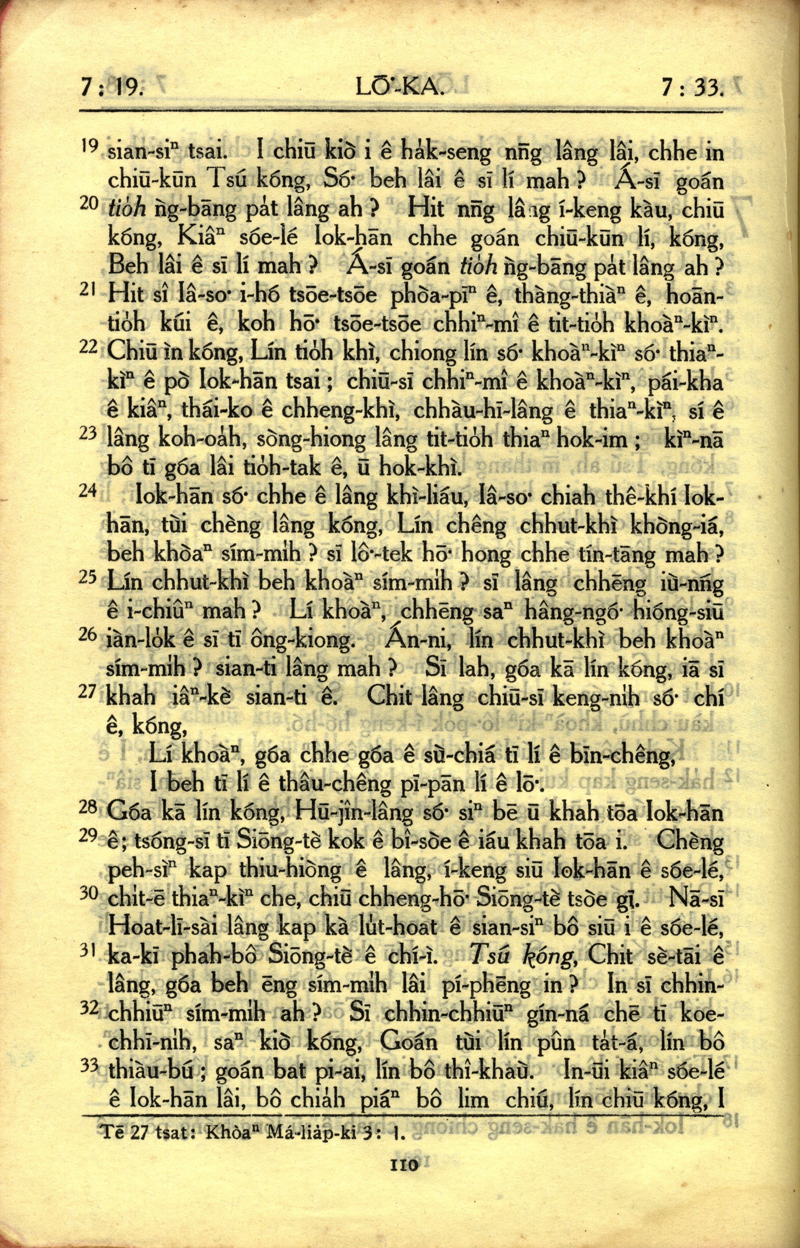 1950年教羅新約全書 路加福音 7 章 19 節到 7 章 33 節