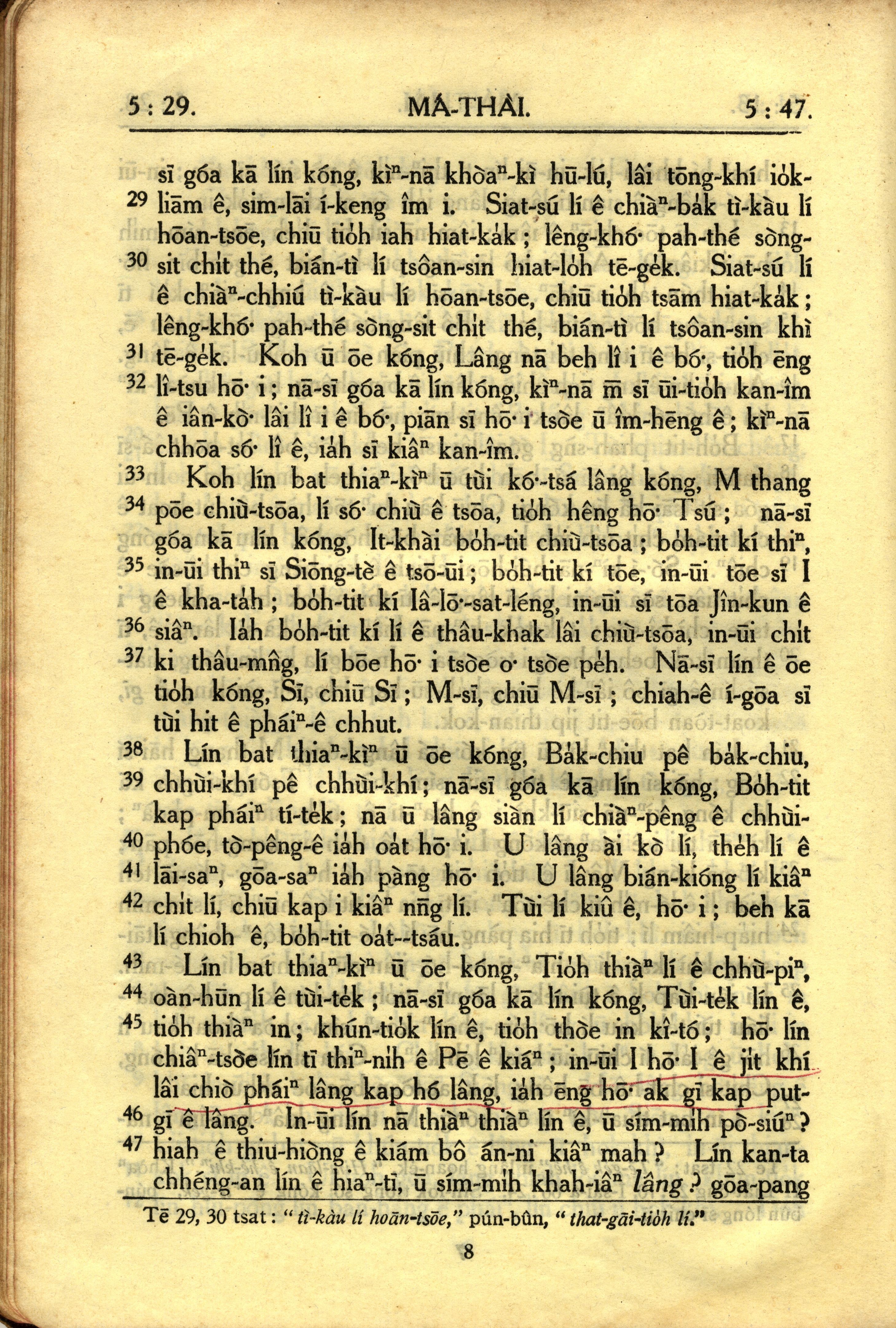 1950年教羅新約全書 馬太福音 5 章 29 節到 5 章 47 節
