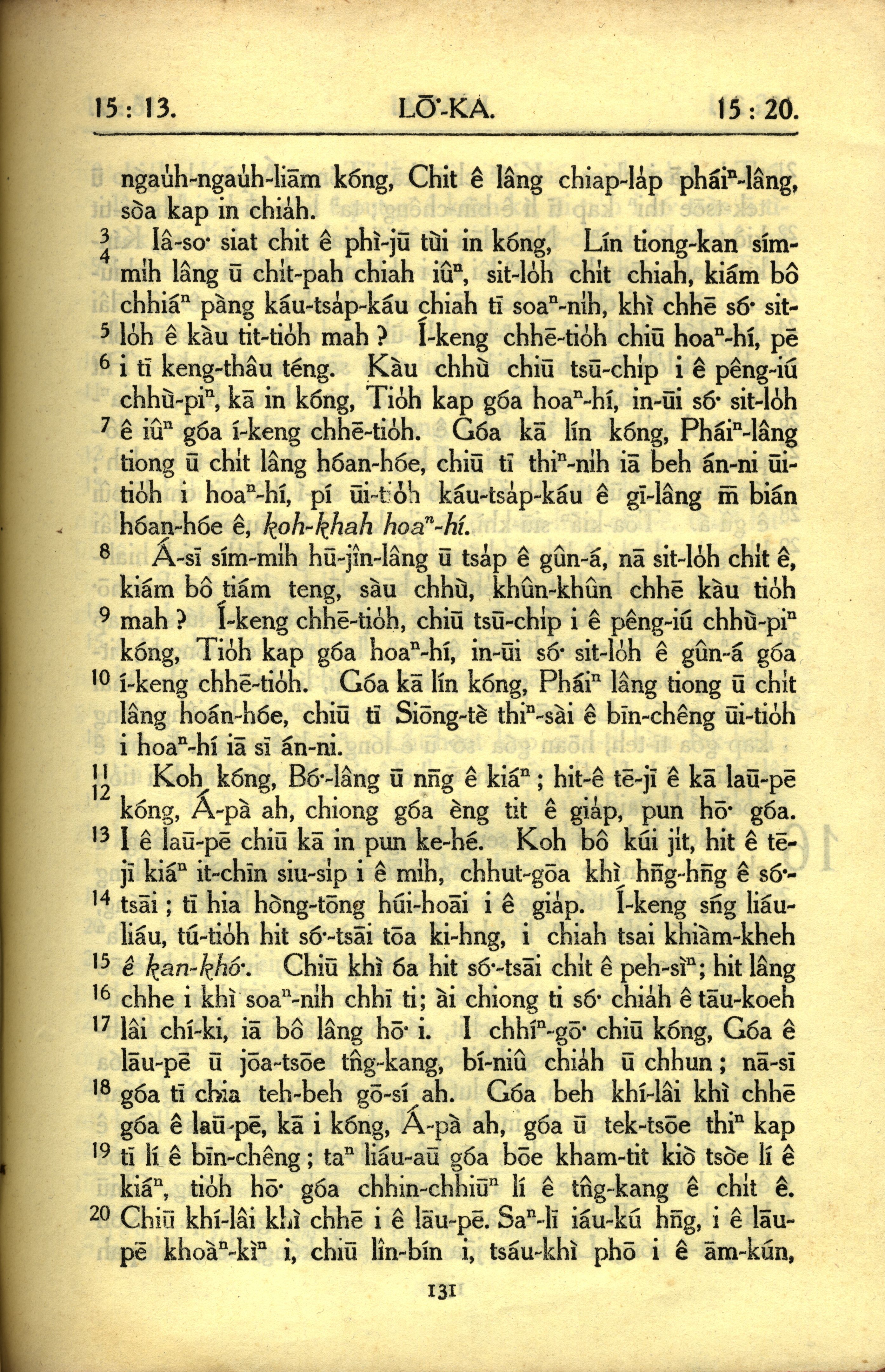 1950年教羅新約全書 路加福音 15 章 13 節到 15 章 20 節