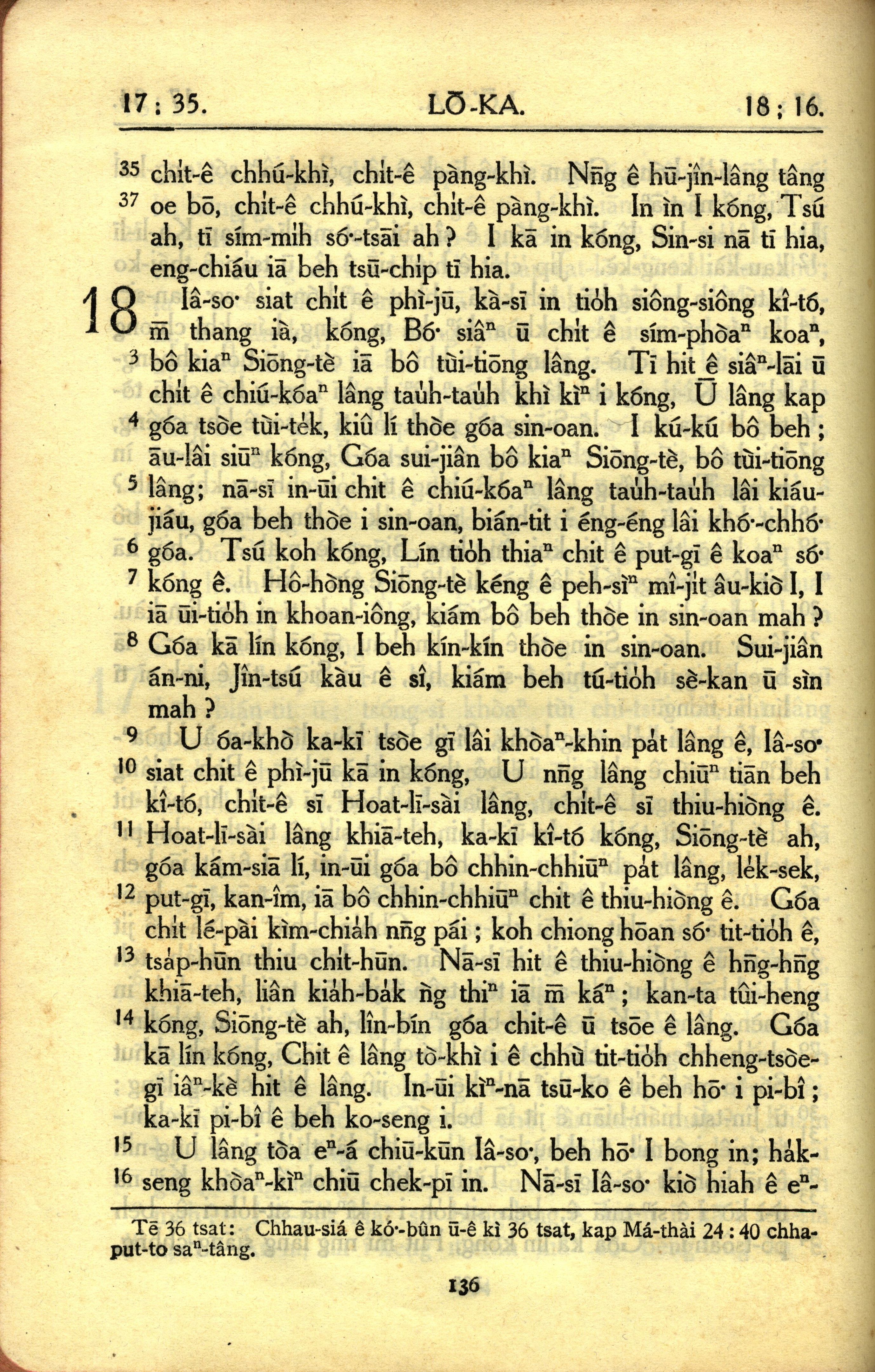 1950年教羅新約全書 路加福音 17 章 35 節到 18 章 16 節