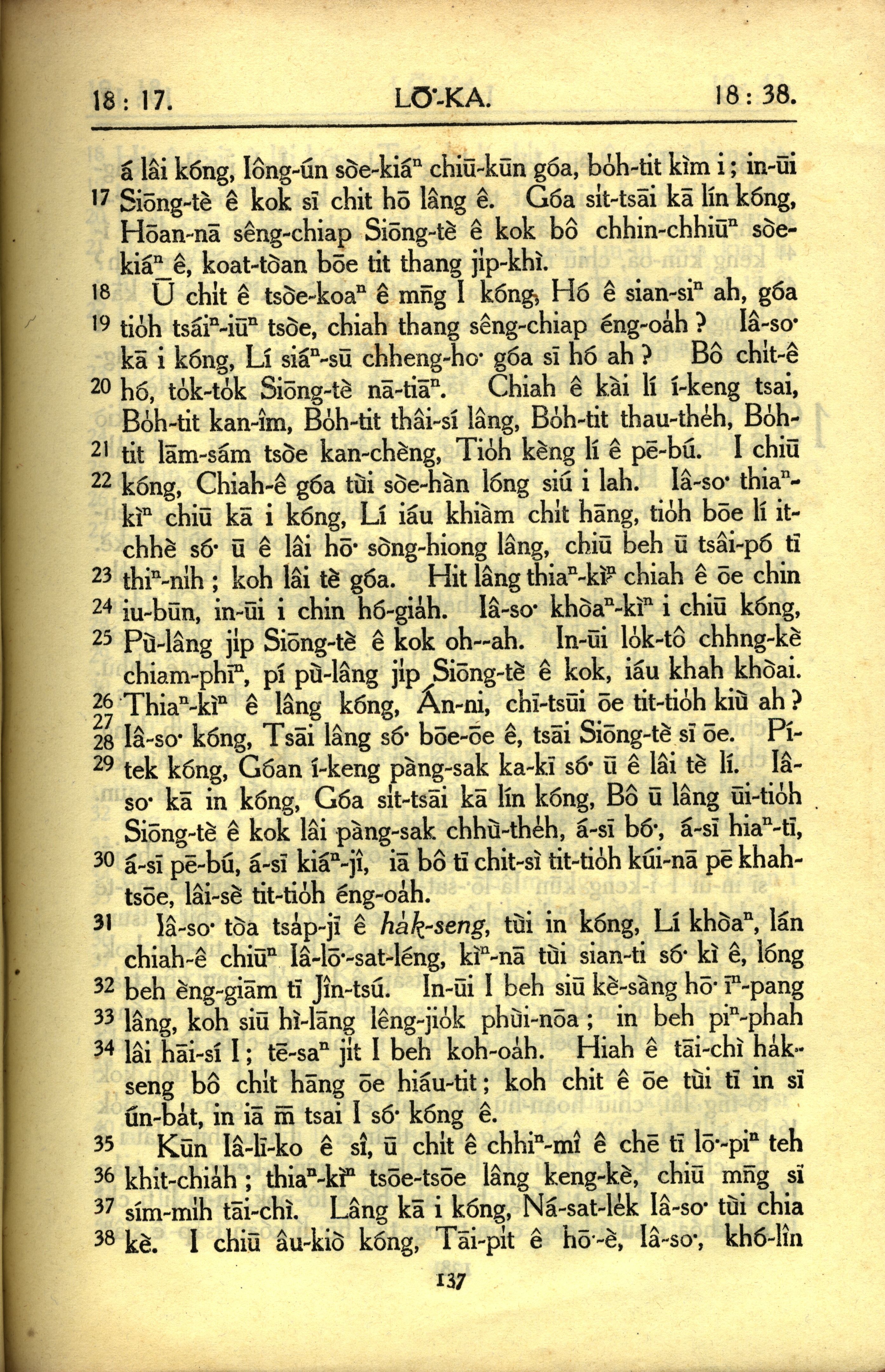 1950年教羅新約全書 路加福音 18 章 17 節到 18 章 38 節