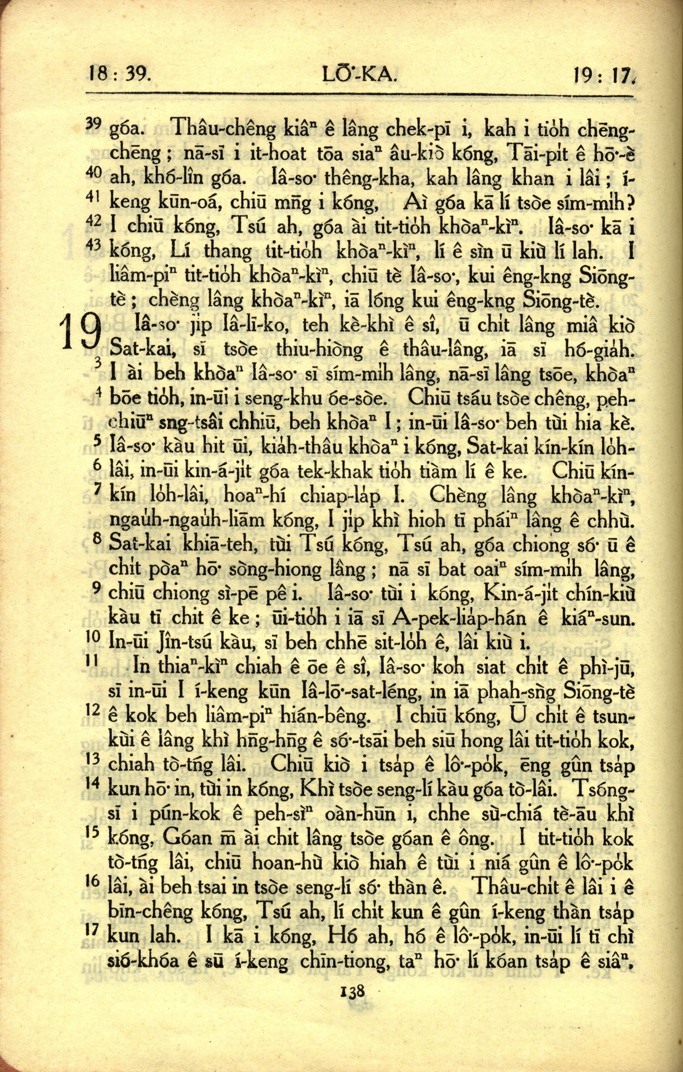 1950年教羅新約全書 路加福音 18 章 39 節到 19 章 17 節