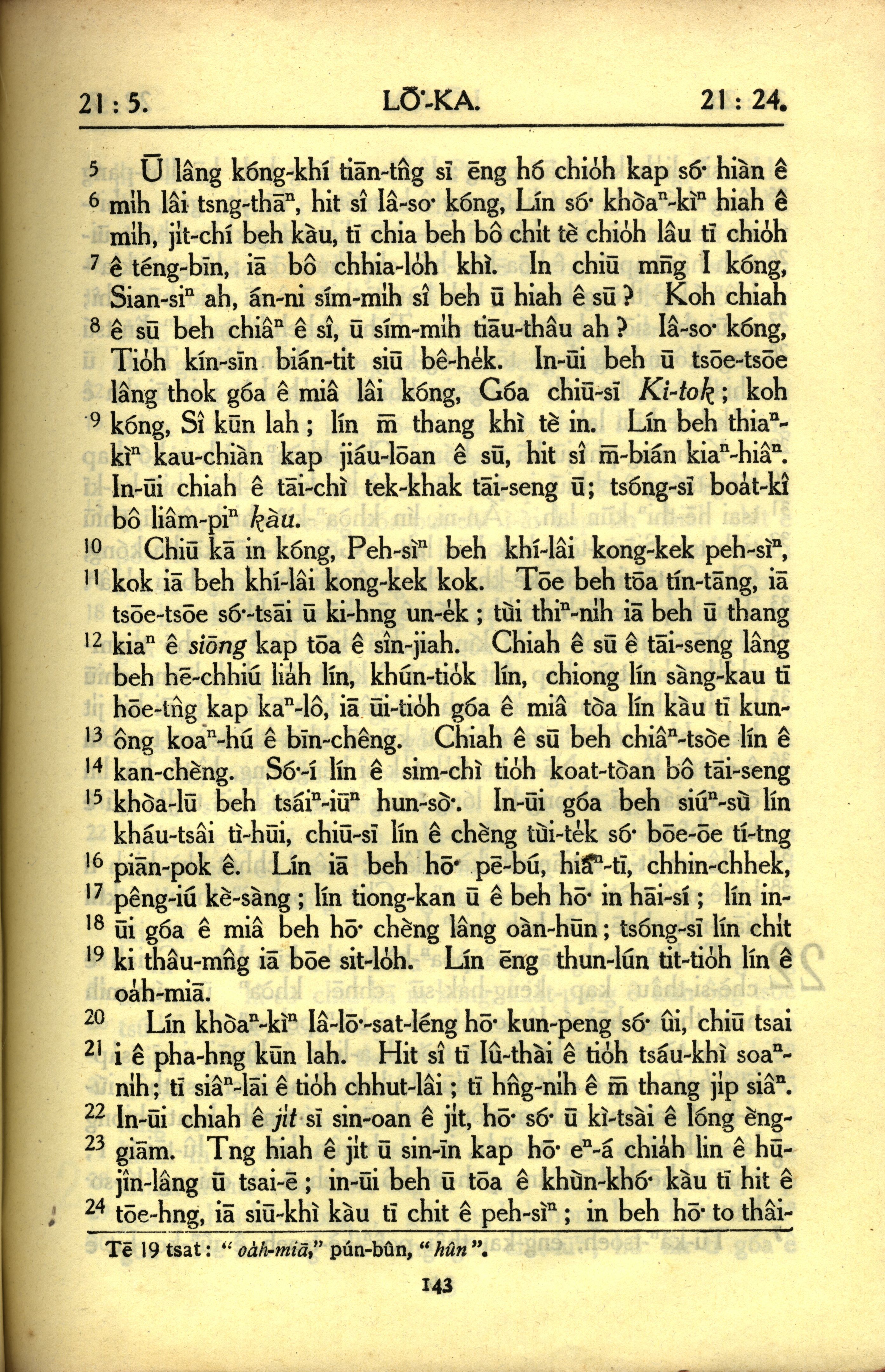 1950年教羅新約全書 路加福音 21 章 5 節到 21 章 24 節