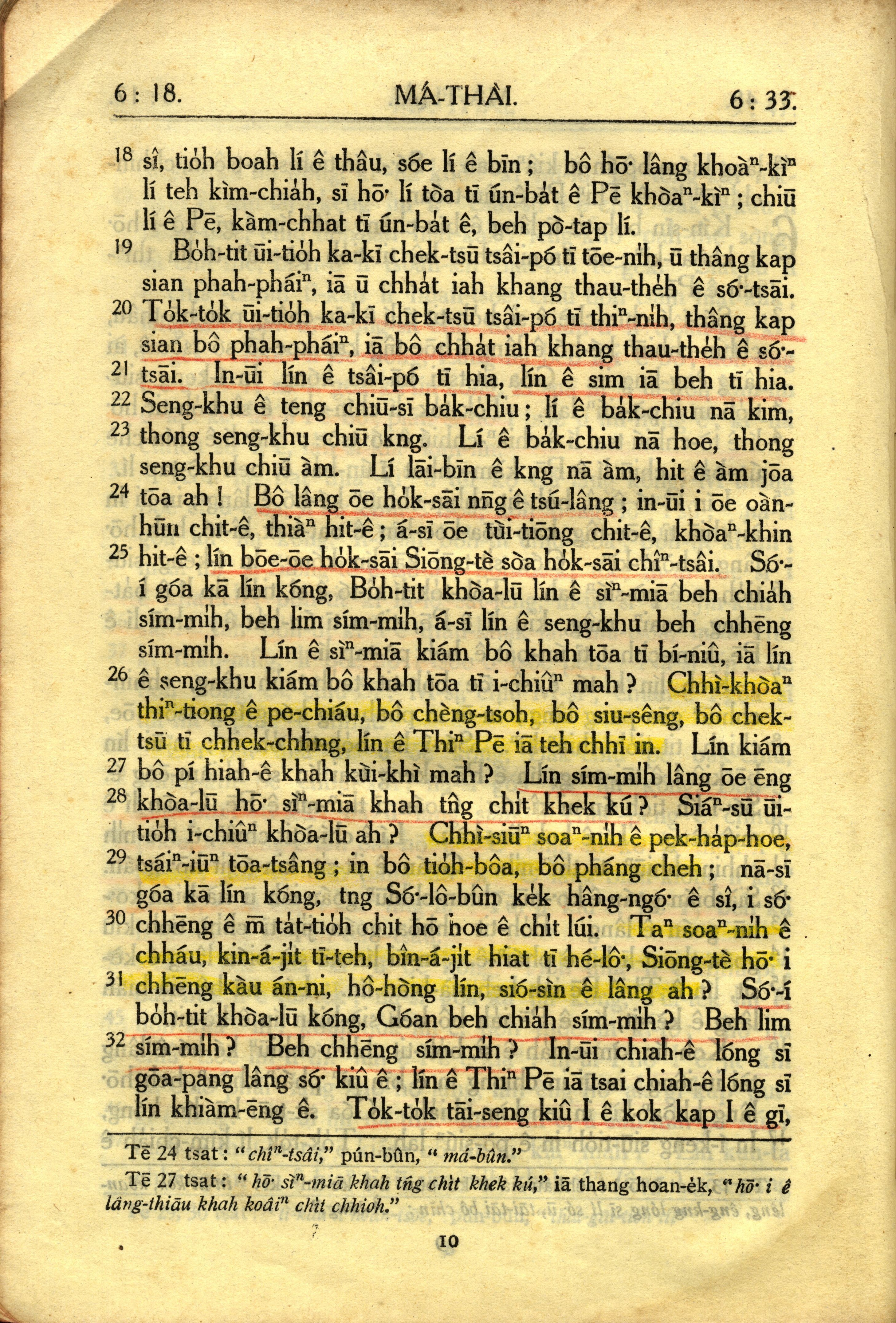 1950年教羅新約全書 馬太福音 6 章 18 節到 6 章 33 節