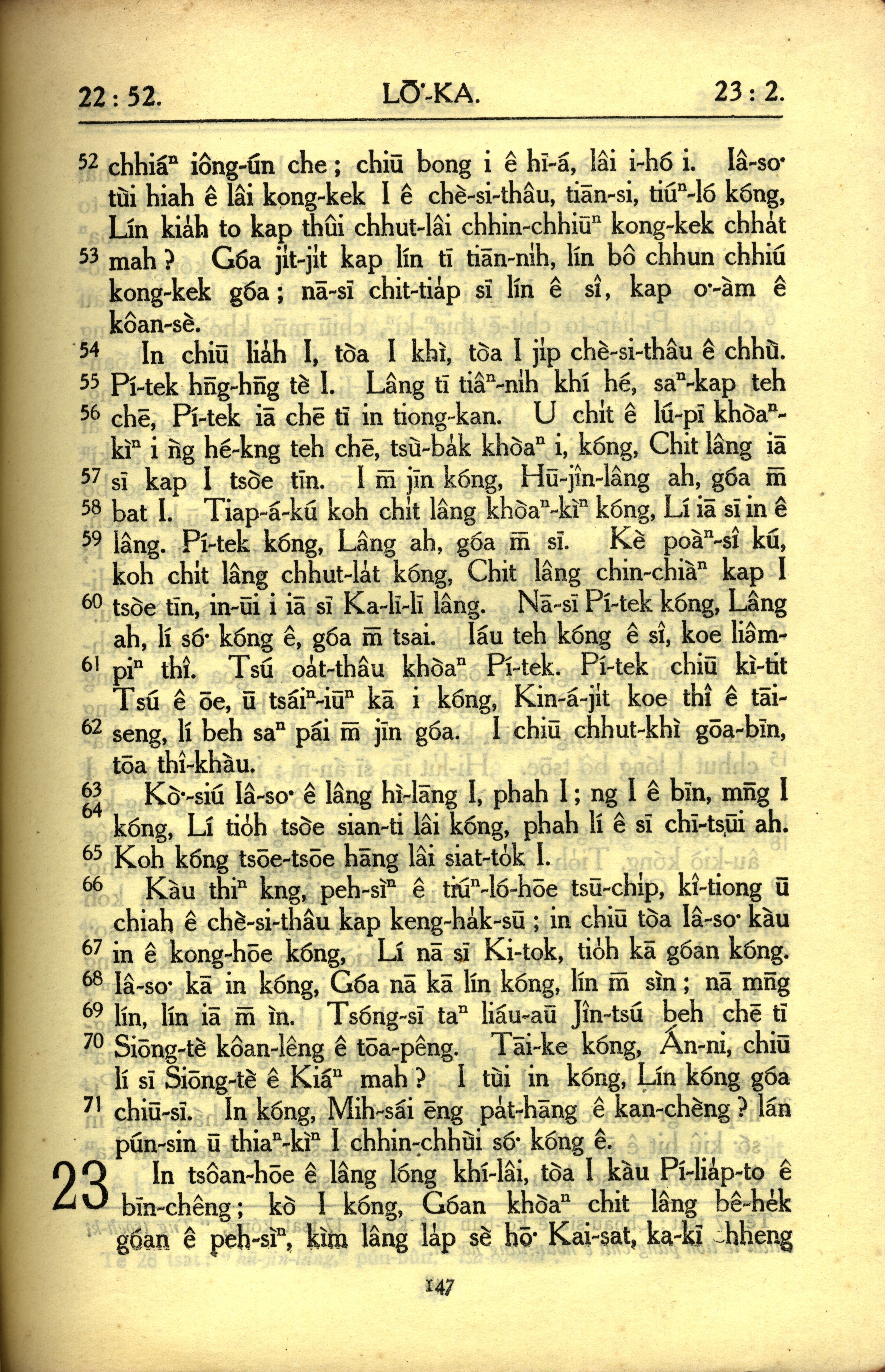 1950年教羅新約全書 路加福音 22 章 52 節到 23 章 2 節