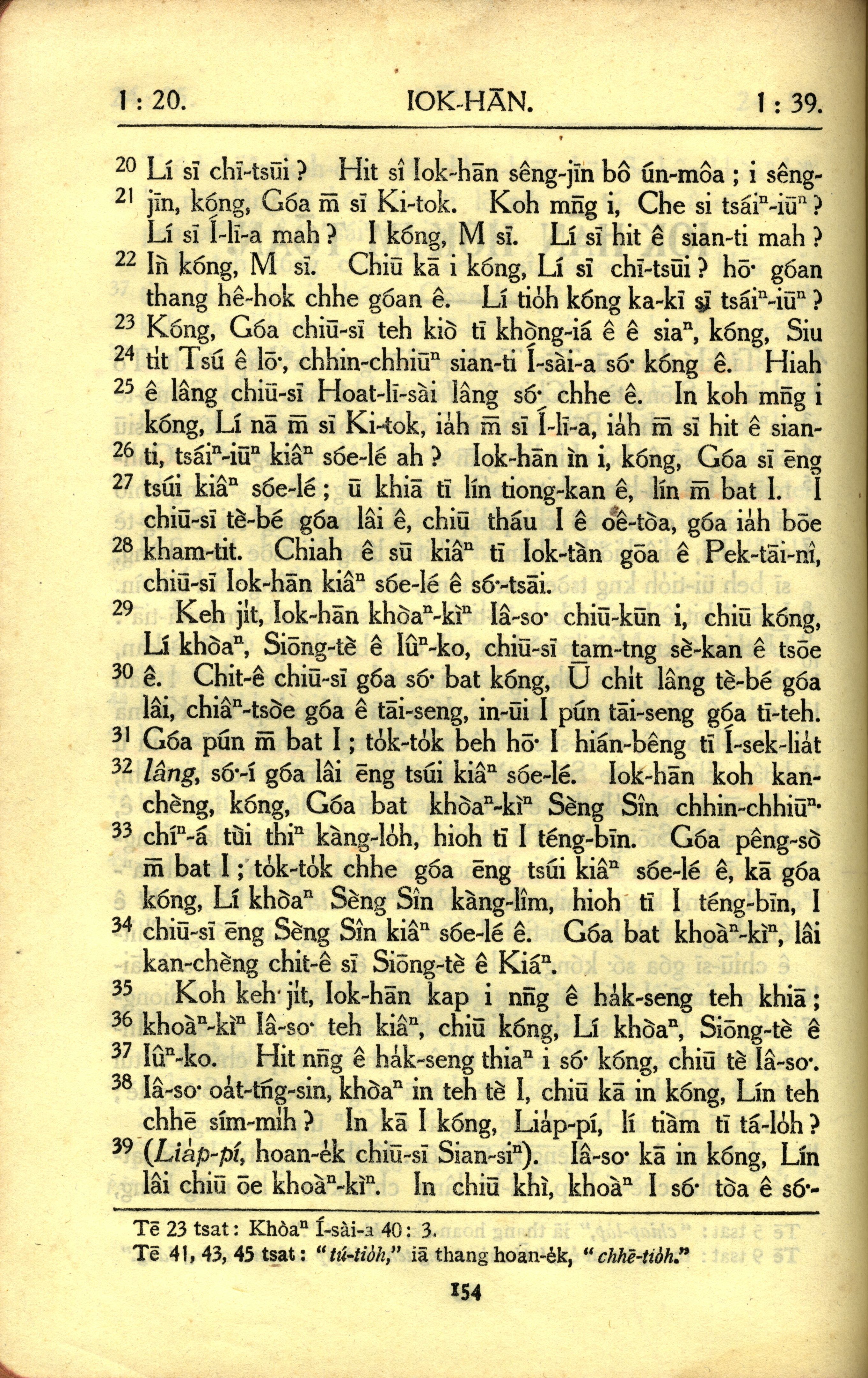 1950年教羅新約全書 約翰福音 1 章 20 節到 1 章 39 節