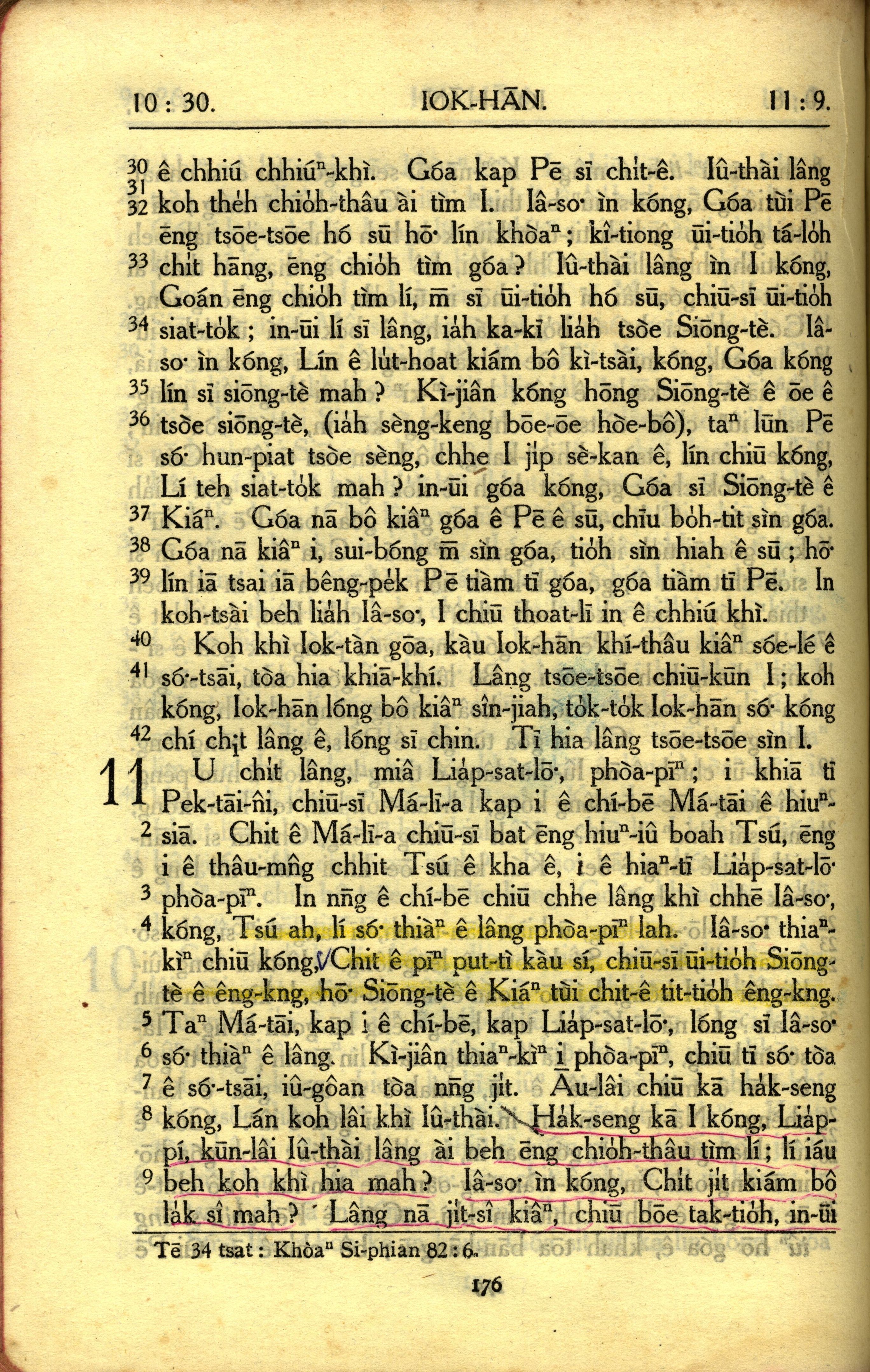 1950年教羅新約全書 約翰福音 10 章 30 節到 11 章 9 節