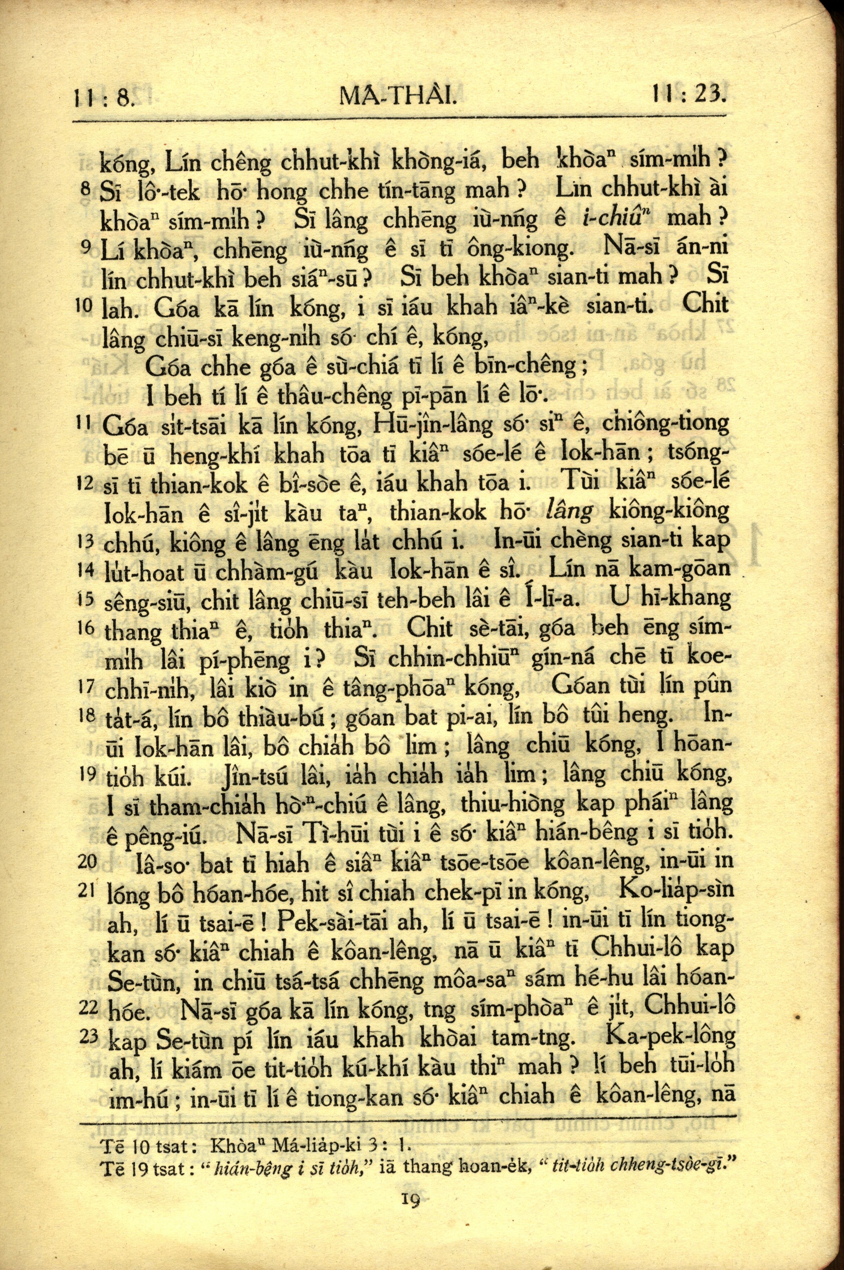 1950年教羅新約全書 馬太福音 11 章 8 節到 11 章 23 節
