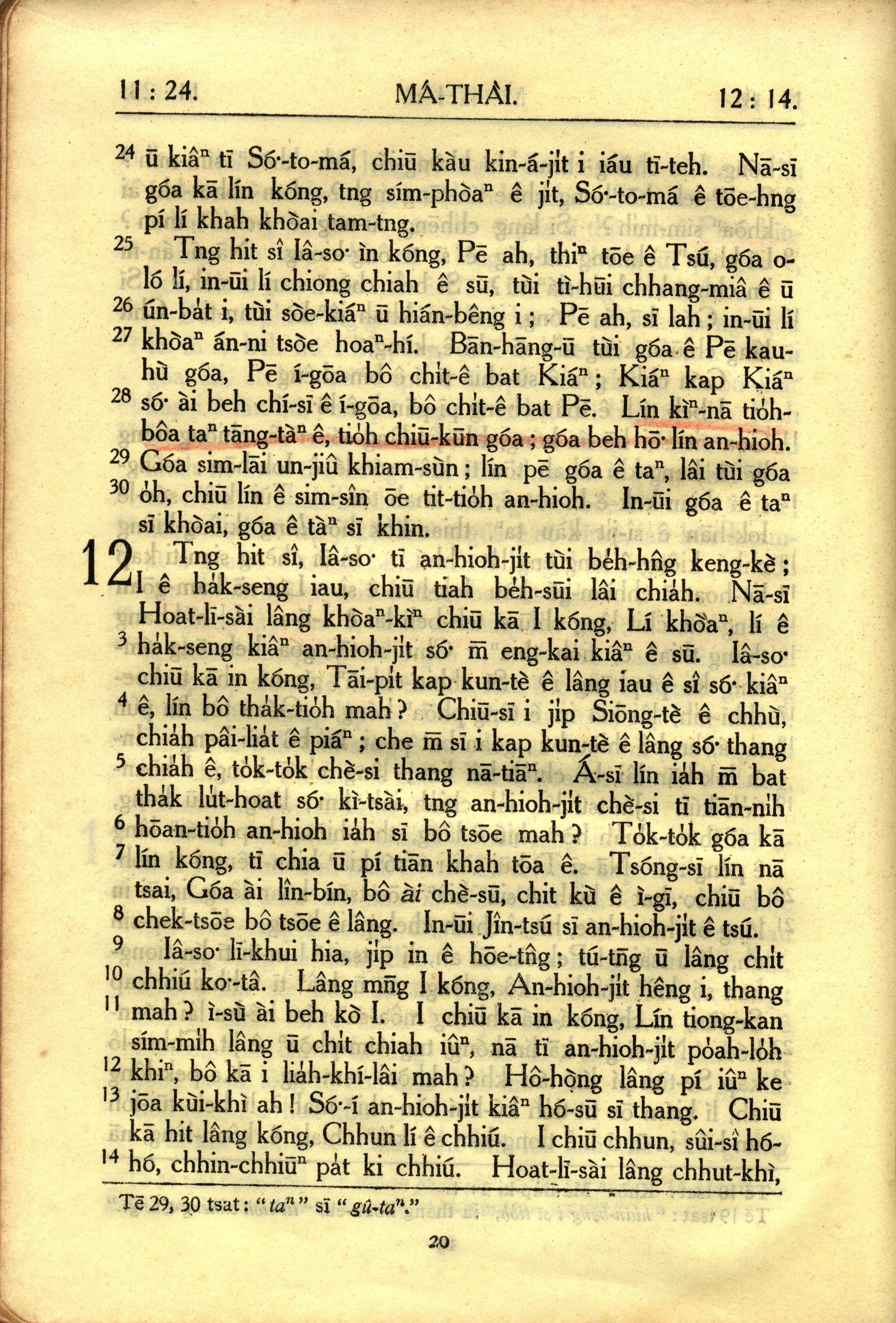 1950年教羅新約全書 馬太福音 11 章 24 節到 12 章 14 節