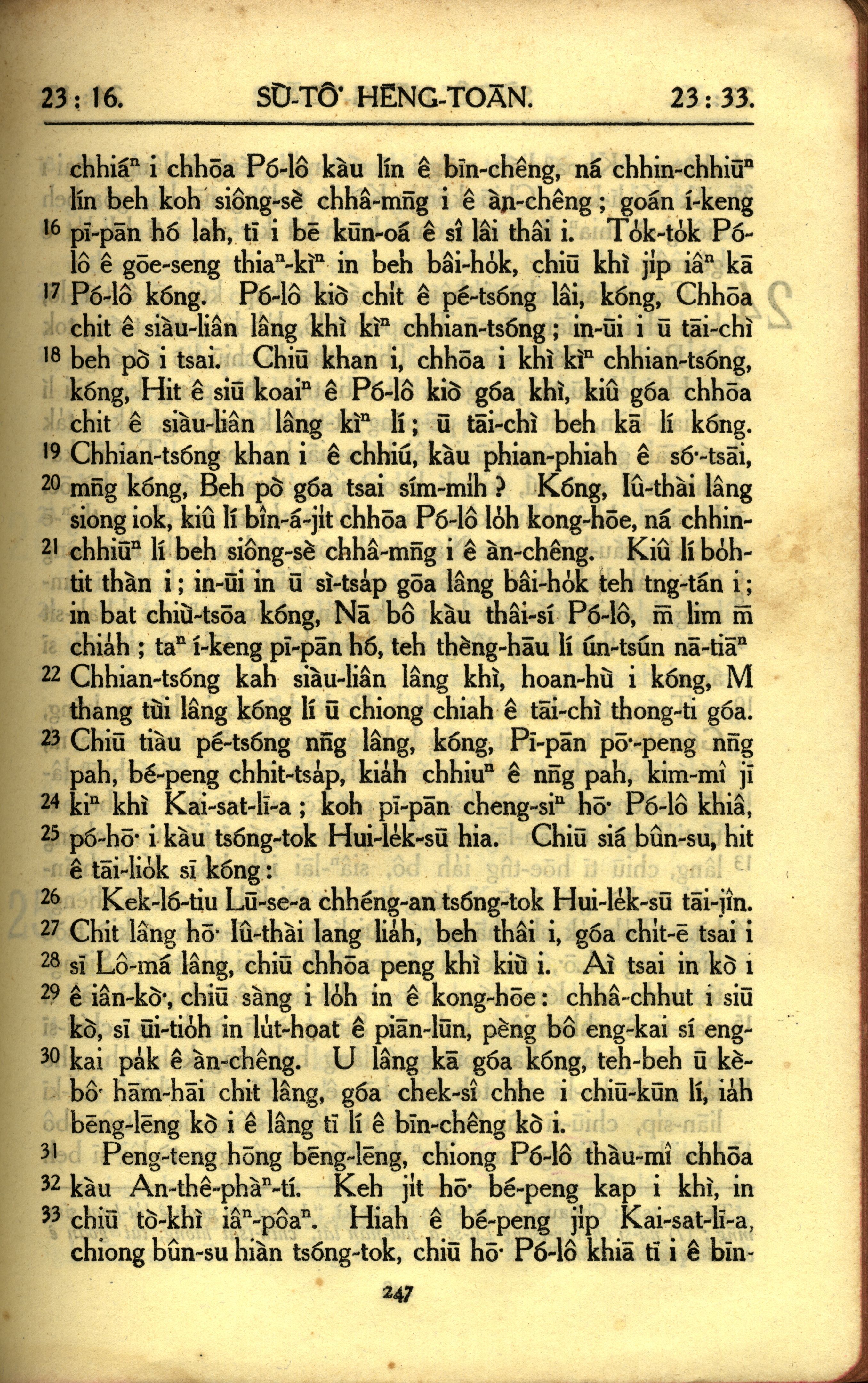 1950年教羅新約全書 使徒行傳 23 章 16 節到 23 章 33 節