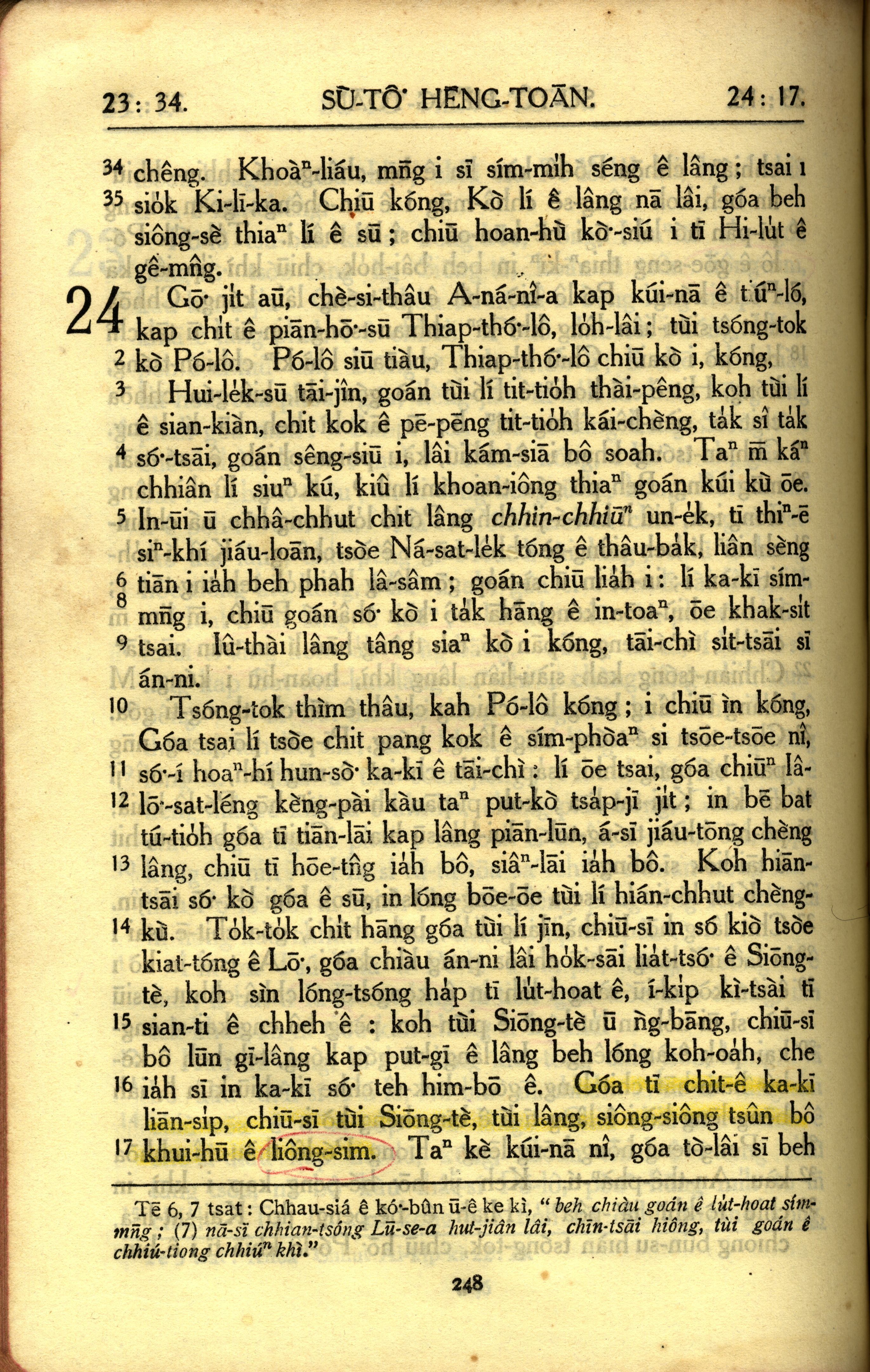 1950年教羅新約全書 使徒行傳 23 章 34 節到 24 章 17 節