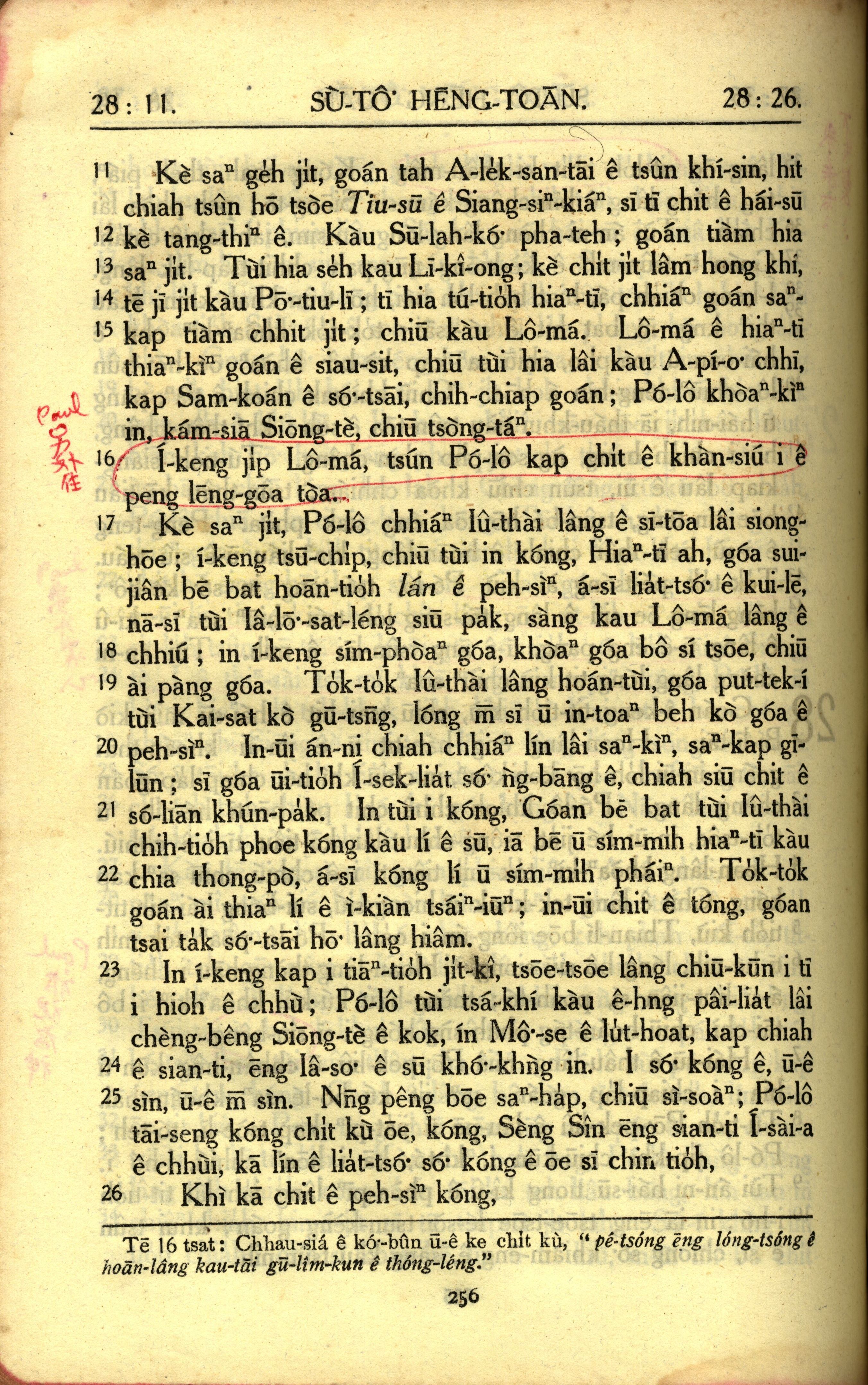 1950年教羅新約全書 使徒行傳 28 章 11 節到 28 章 26 節