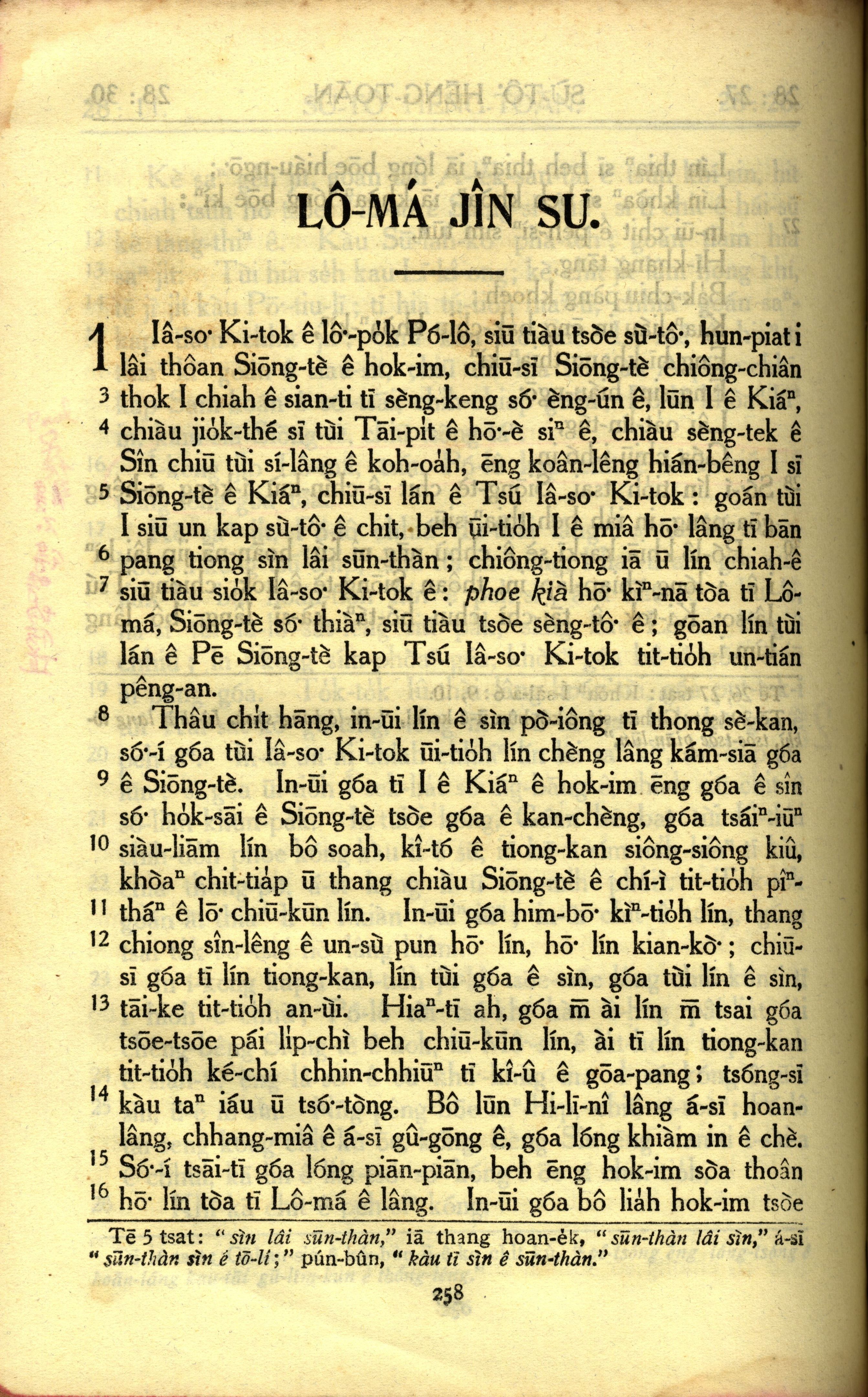 1950年教羅新約全書 羅馬書 1 章 1 節到 1 章 16 節