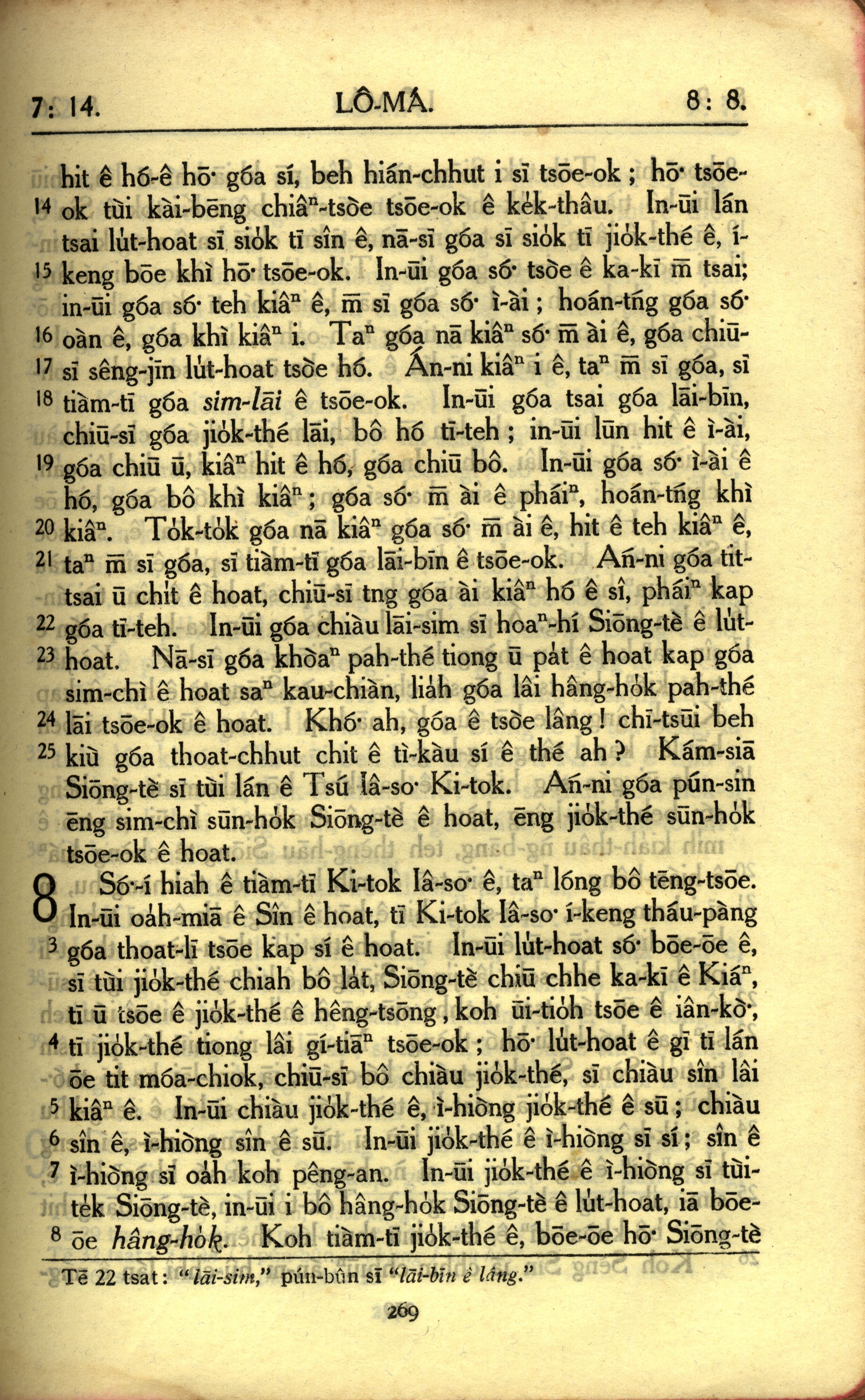 1950年教羅新約全書 羅馬書 7 章 14 節到 8 章 8 節