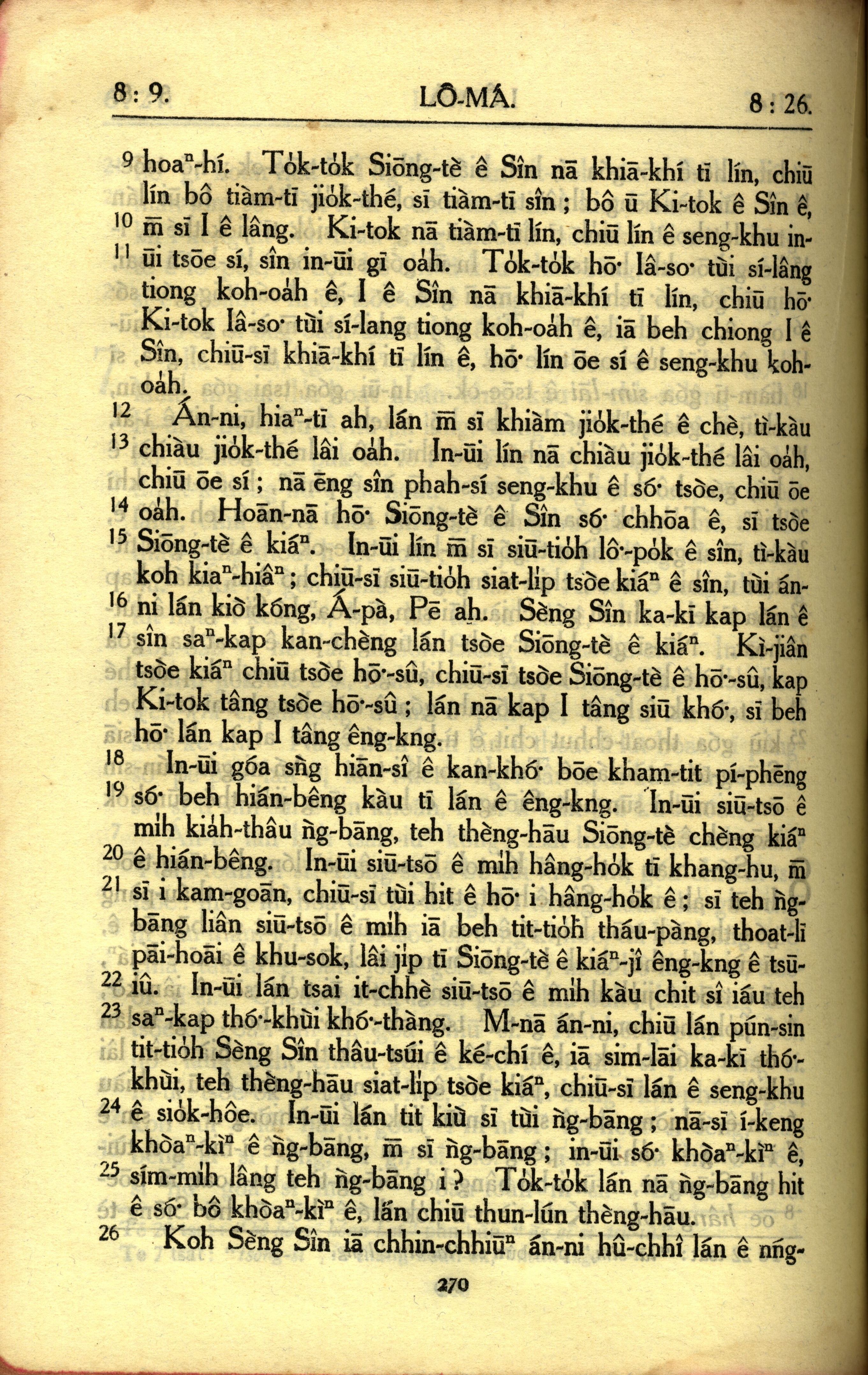 1950年教羅新約全書 羅馬書 8 章 9 節到 8 章 26 節