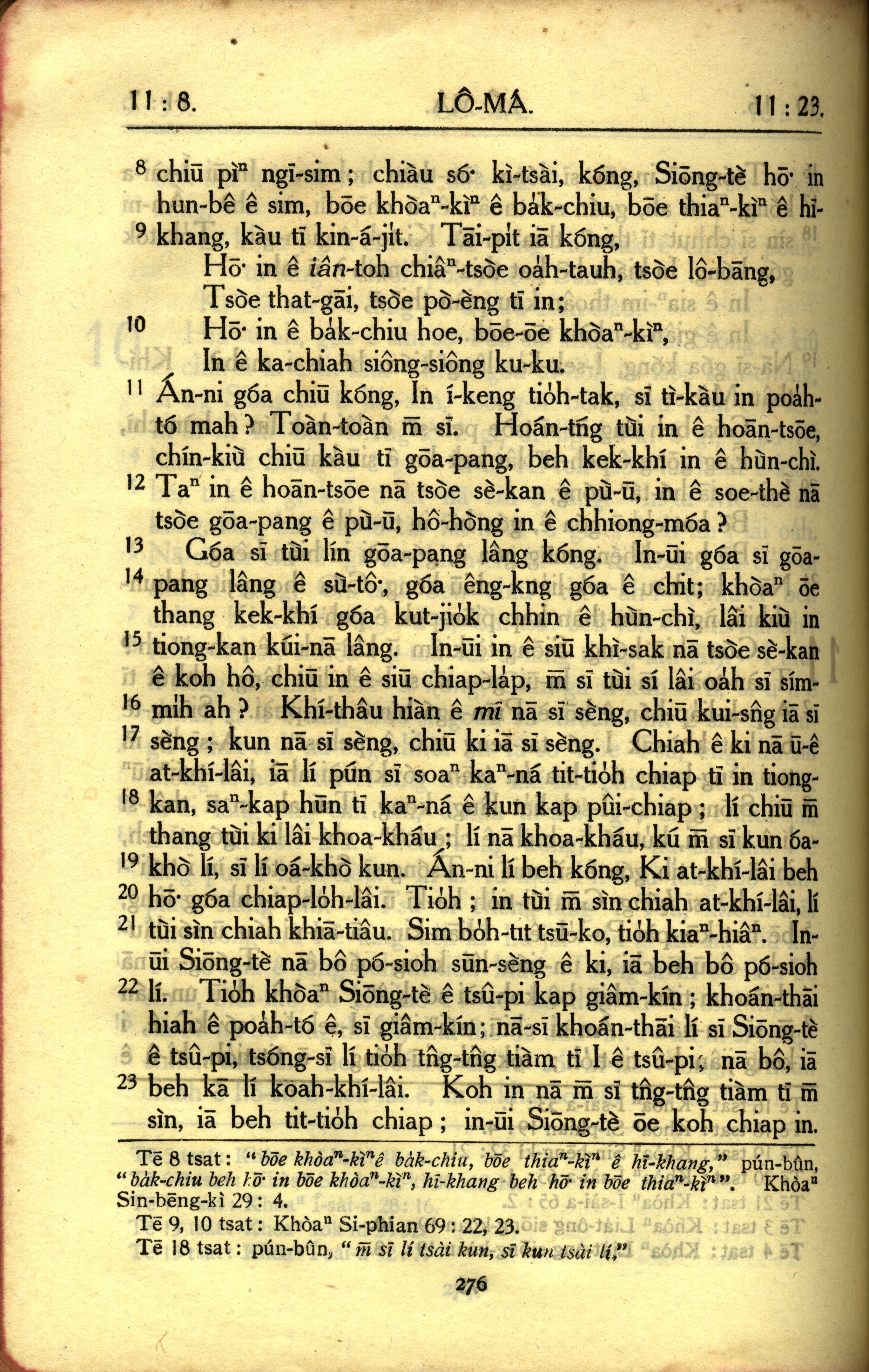 1950年教羅新約全書 羅馬書 11 章 8 節到 11 章 23 節