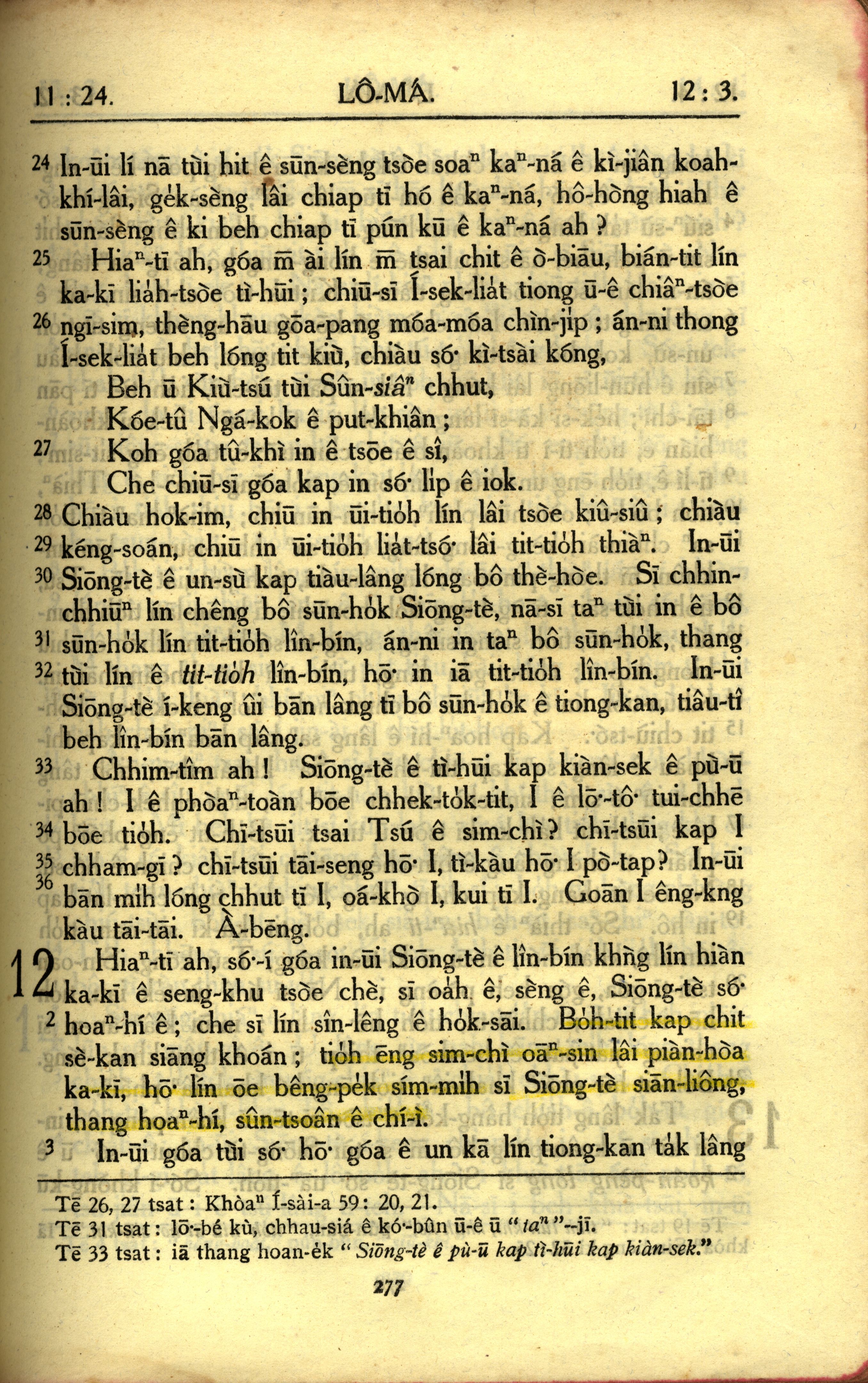 1950年教羅新約全書 羅馬書 11 章 24 節到 12 章 3 節