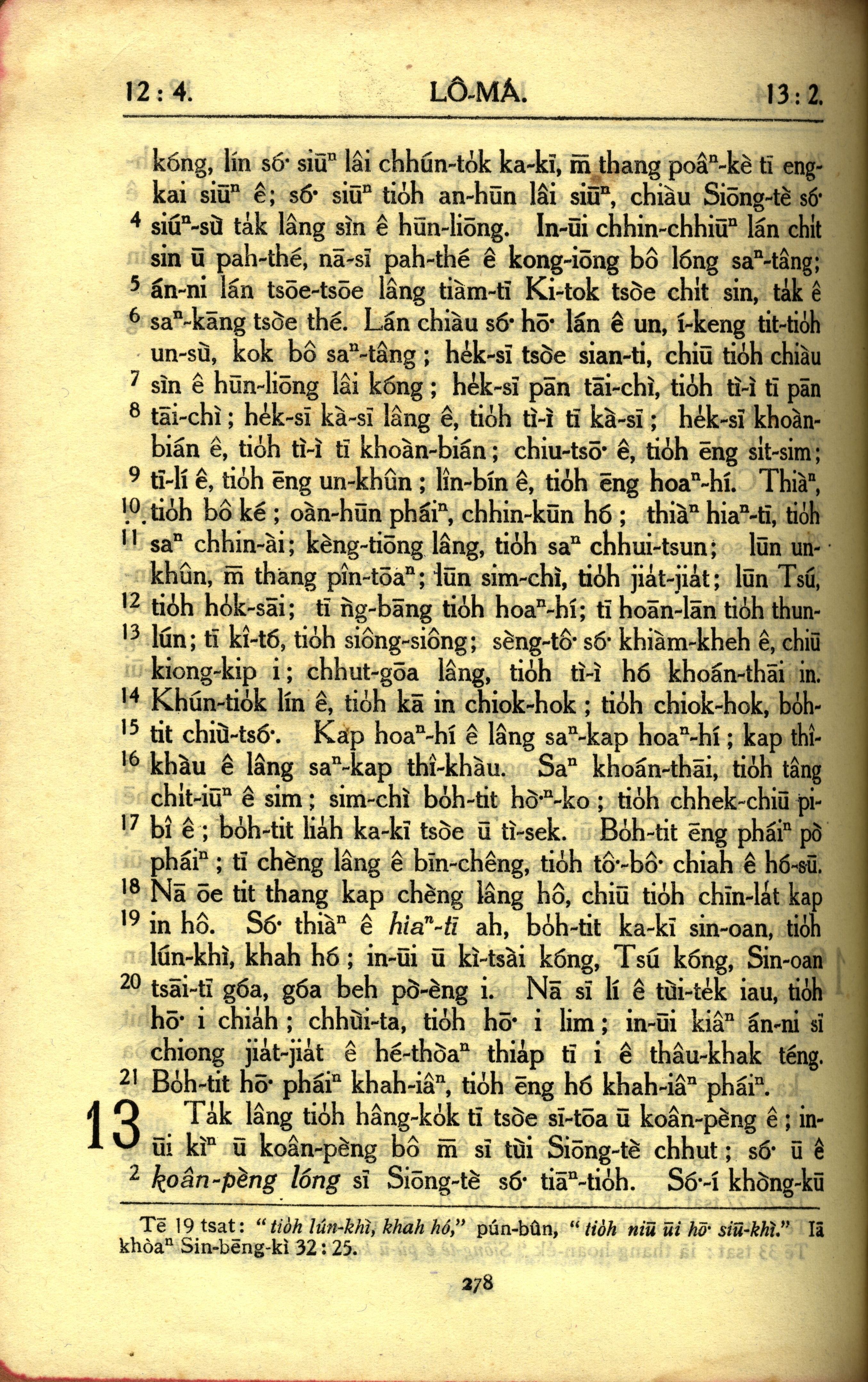 1950年教羅新約全書 羅馬書 12 章 4 節到 13 章 2 節