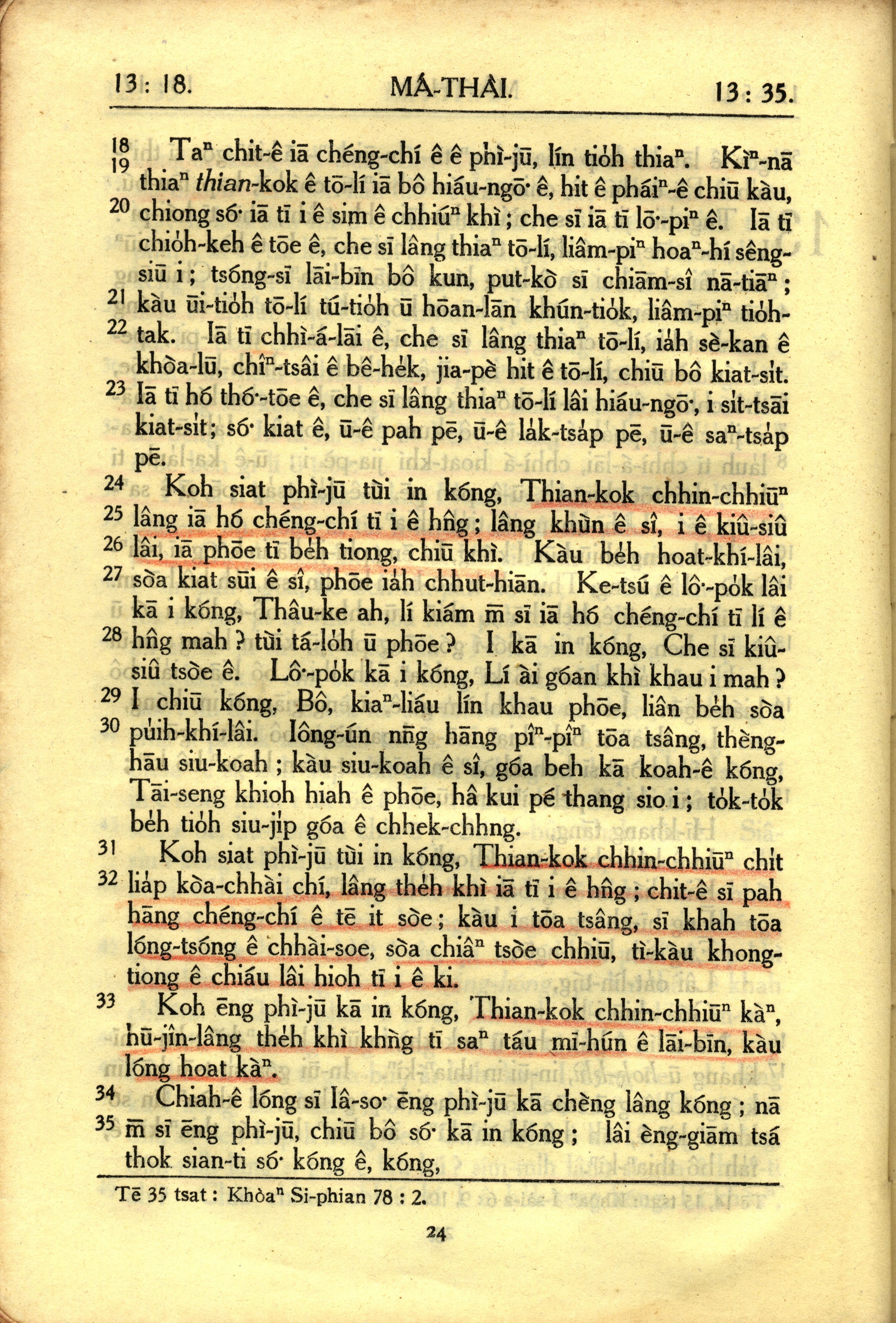 1950年教羅新約全書 馬太福音 13 章 18 節到 13 章 35 節