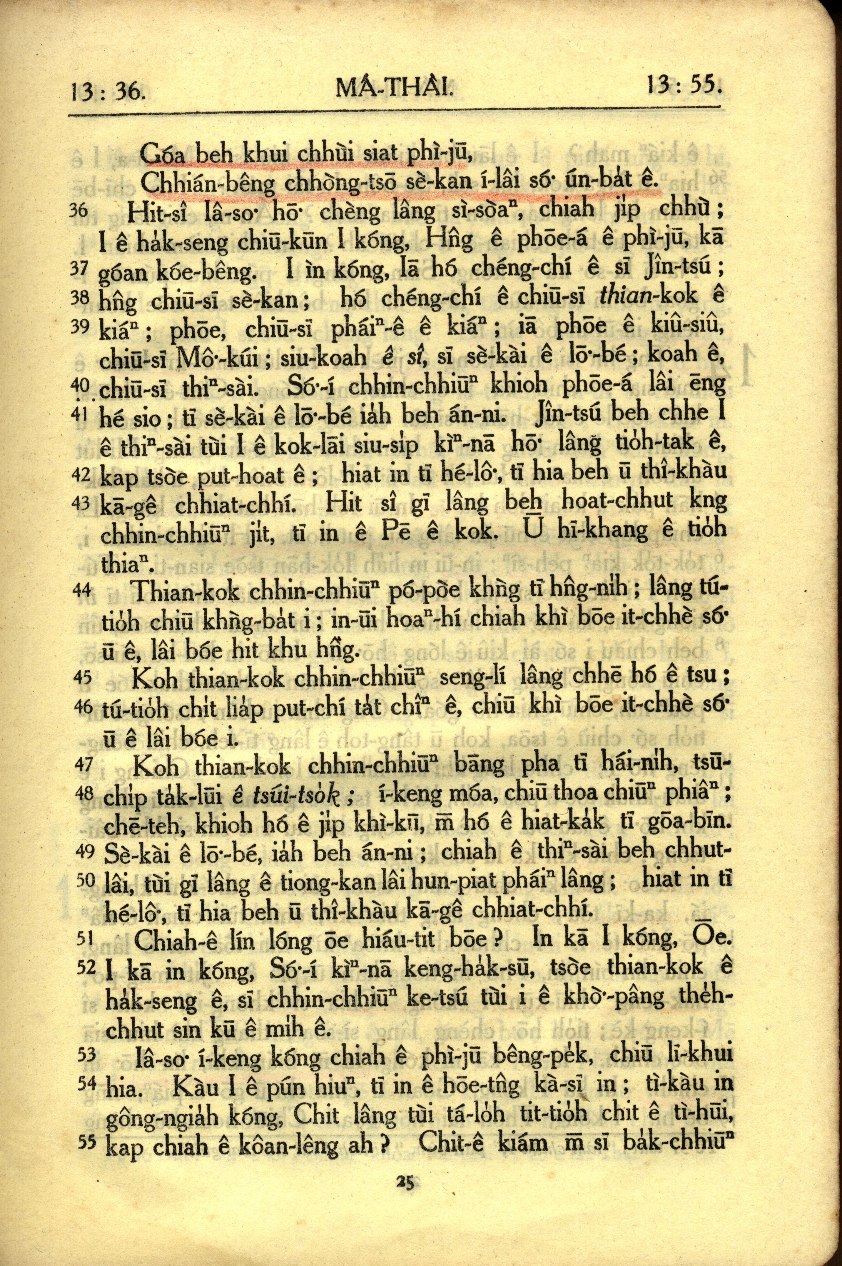 1950年教羅新約全書 馬太福音 13 章 36 節到 13 章 55 節