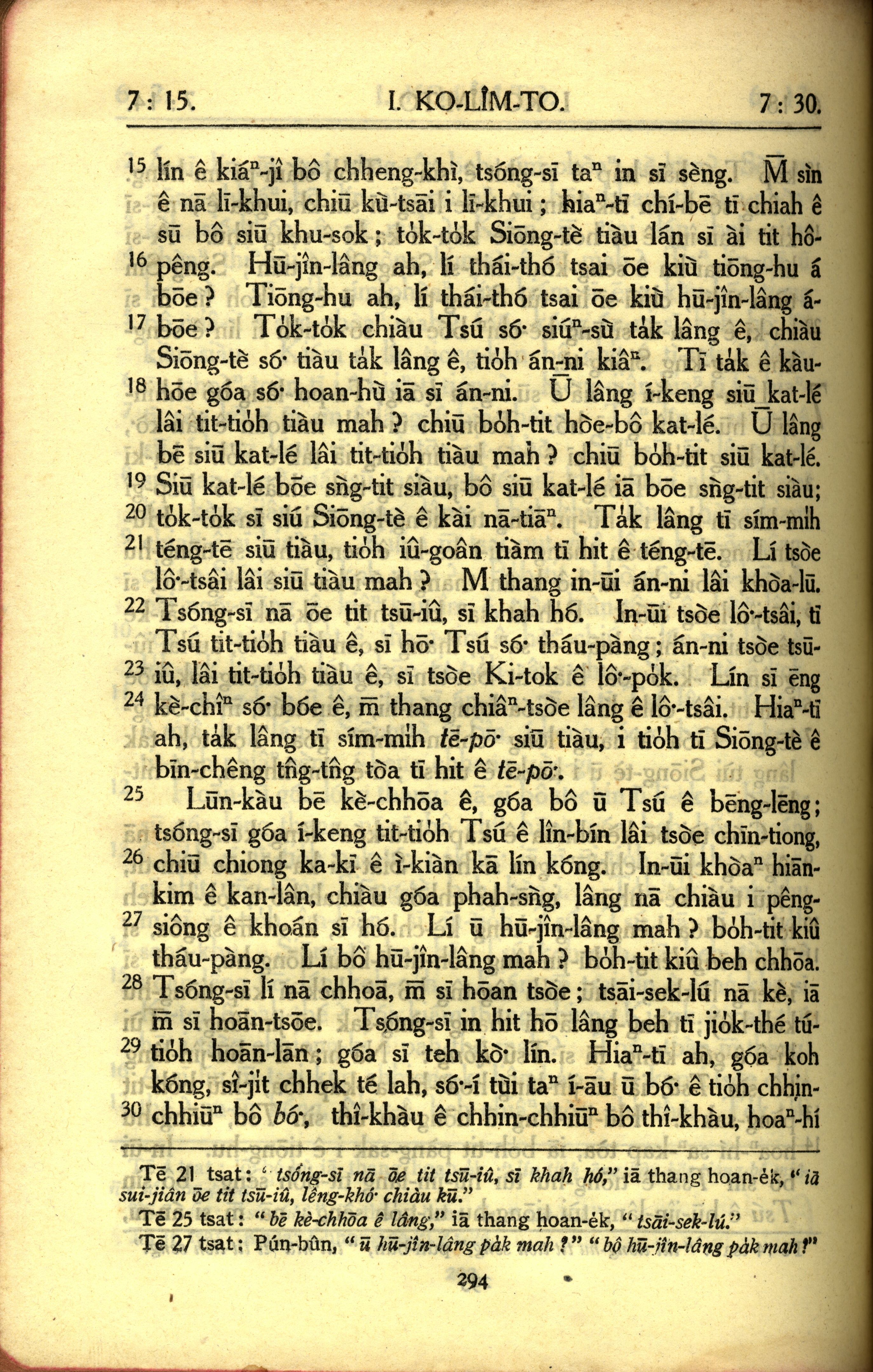 1950年教羅新約全書 哥林多前書 7 章 15 節到 7 章 30 節
